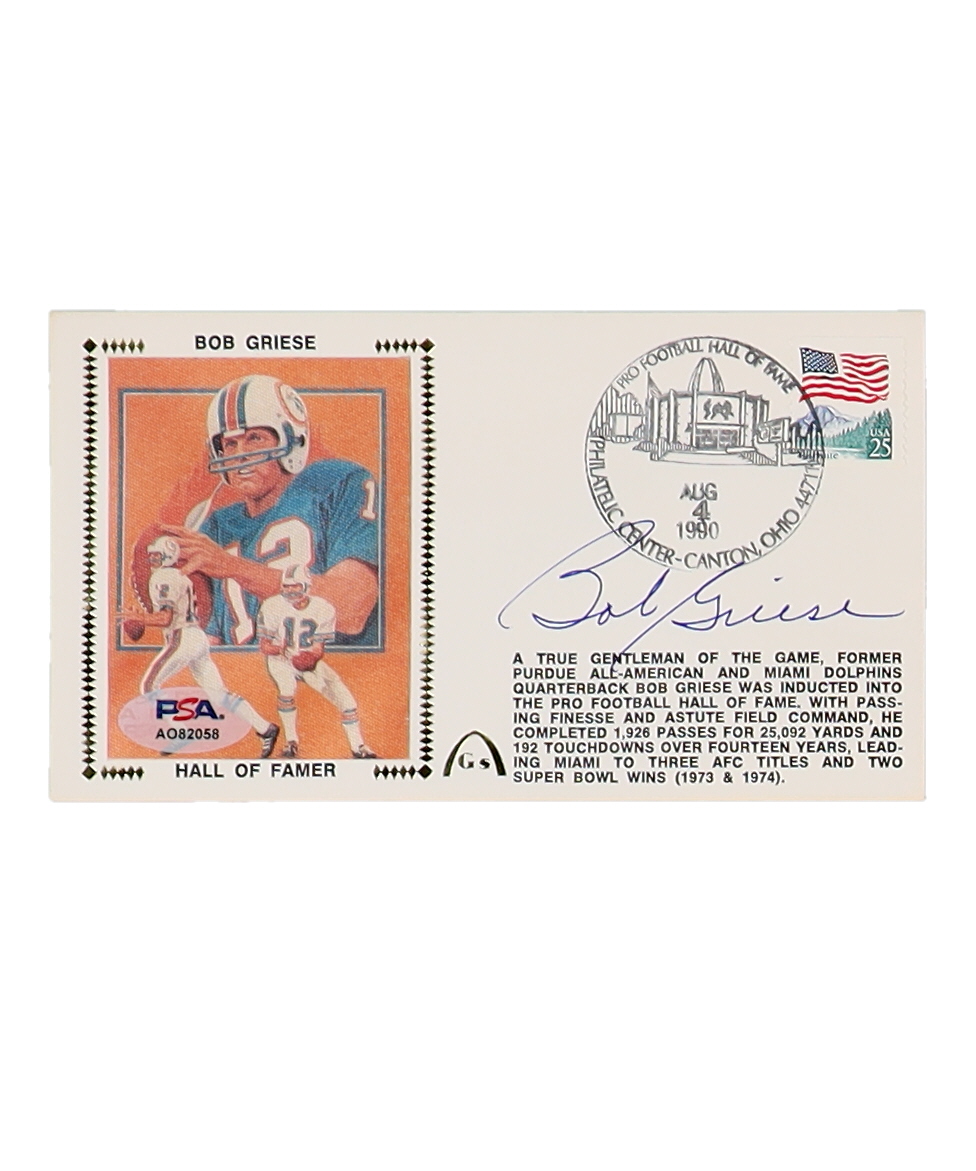 First Day Cover Envelope dated August 4th, 1990. Hand-signed by Bob Griese (Miami Dolphins, HOF).