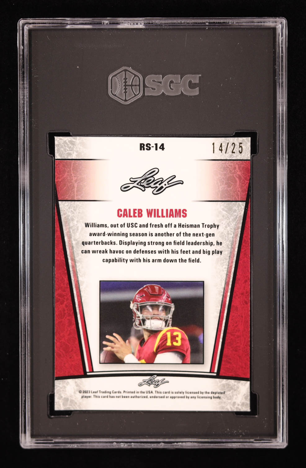 Caleb Williams 2023 Leaf Metal Special Release Rookie Silver Mojo Silver #RS14 RC #14/25 (SGC 9.5)