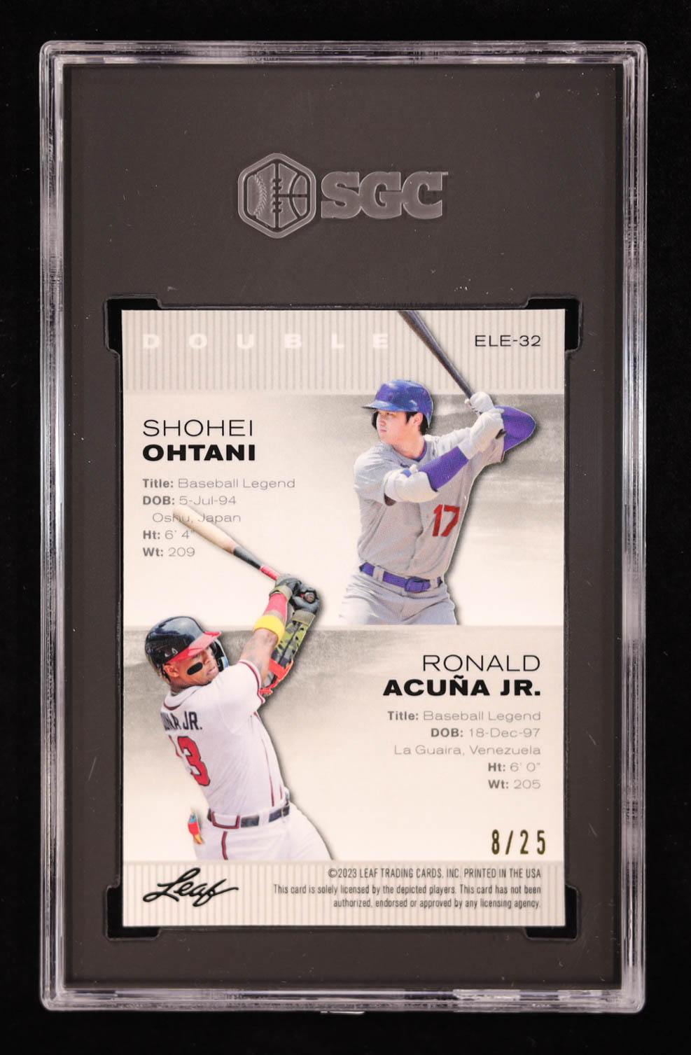 Shohei Ohtani / Ronald Acuna Jr. 2023 Leaf Special Release Exclusive Legends Edition Mojo Silver #ELE32 #/25 (SGC 9)