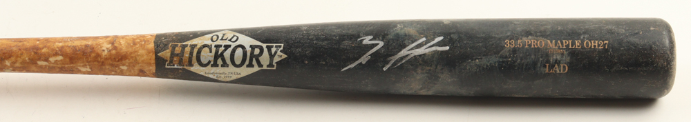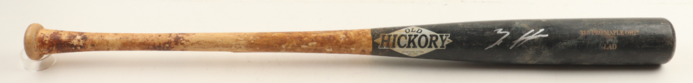 Old Hickory baseball bat. Hand-signed by Zyhir Hope (Los Angeles Dodgers). Please note, the bat has been game-used and cracked by an unknown player.