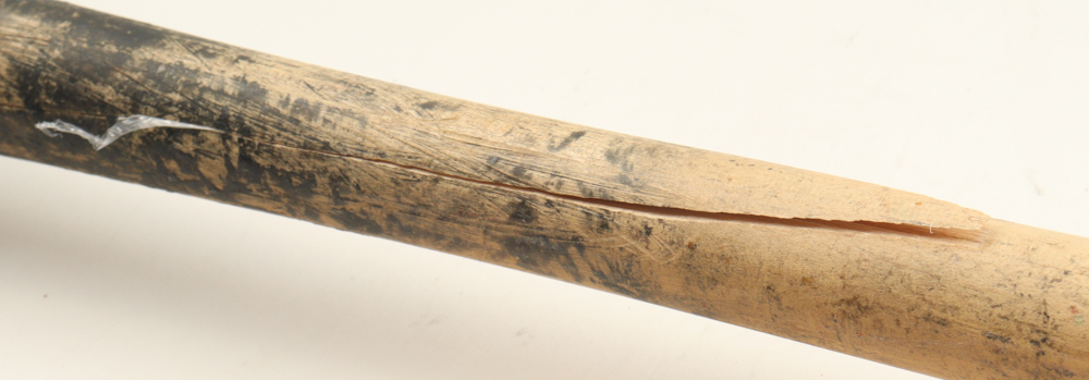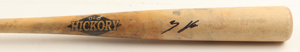 Old Hickory baseball bat. Hand-signed by Zyhir Hope (Los Angeles Dodgers). Please note, the bat has been game-used and cracked by an unknown player.