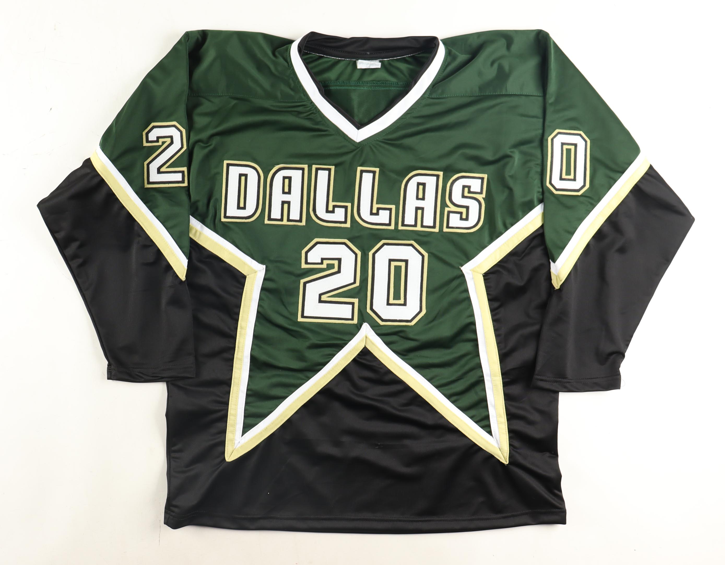 Custom jersey with everything sewn on, size XL. Hand-signed and inscribed by Ed Belfour (HOF).
