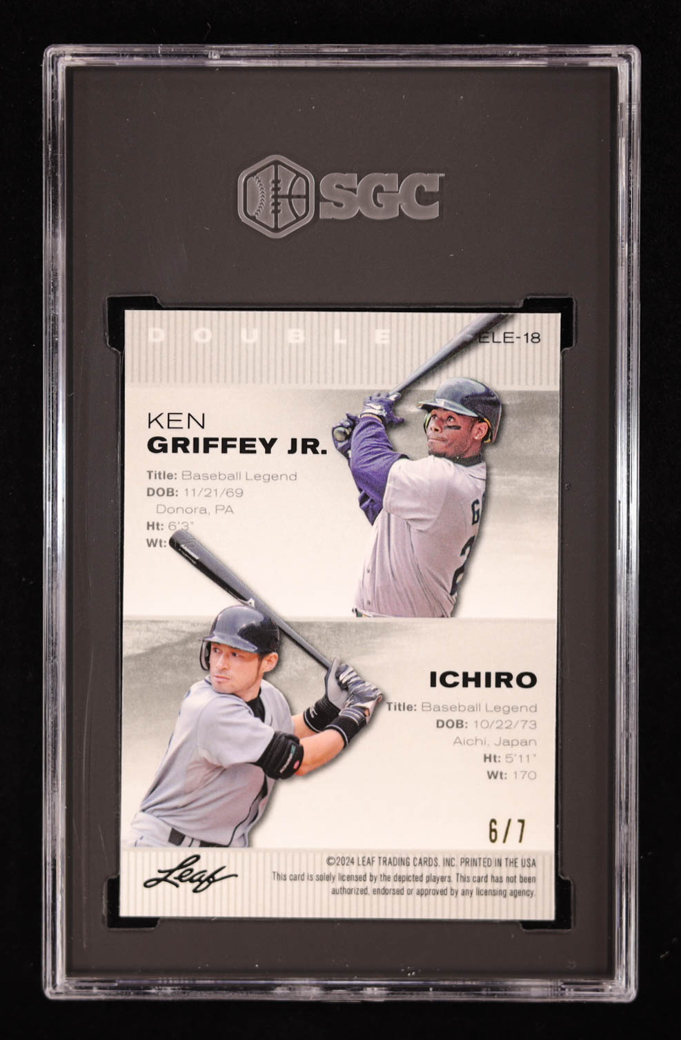 Ken Griffey Jr. / Ichiro 2024 Leaf Metal Special Release Exclusive Legends Edition Crystal Black #ELE18 #6/7 (SGC 9)