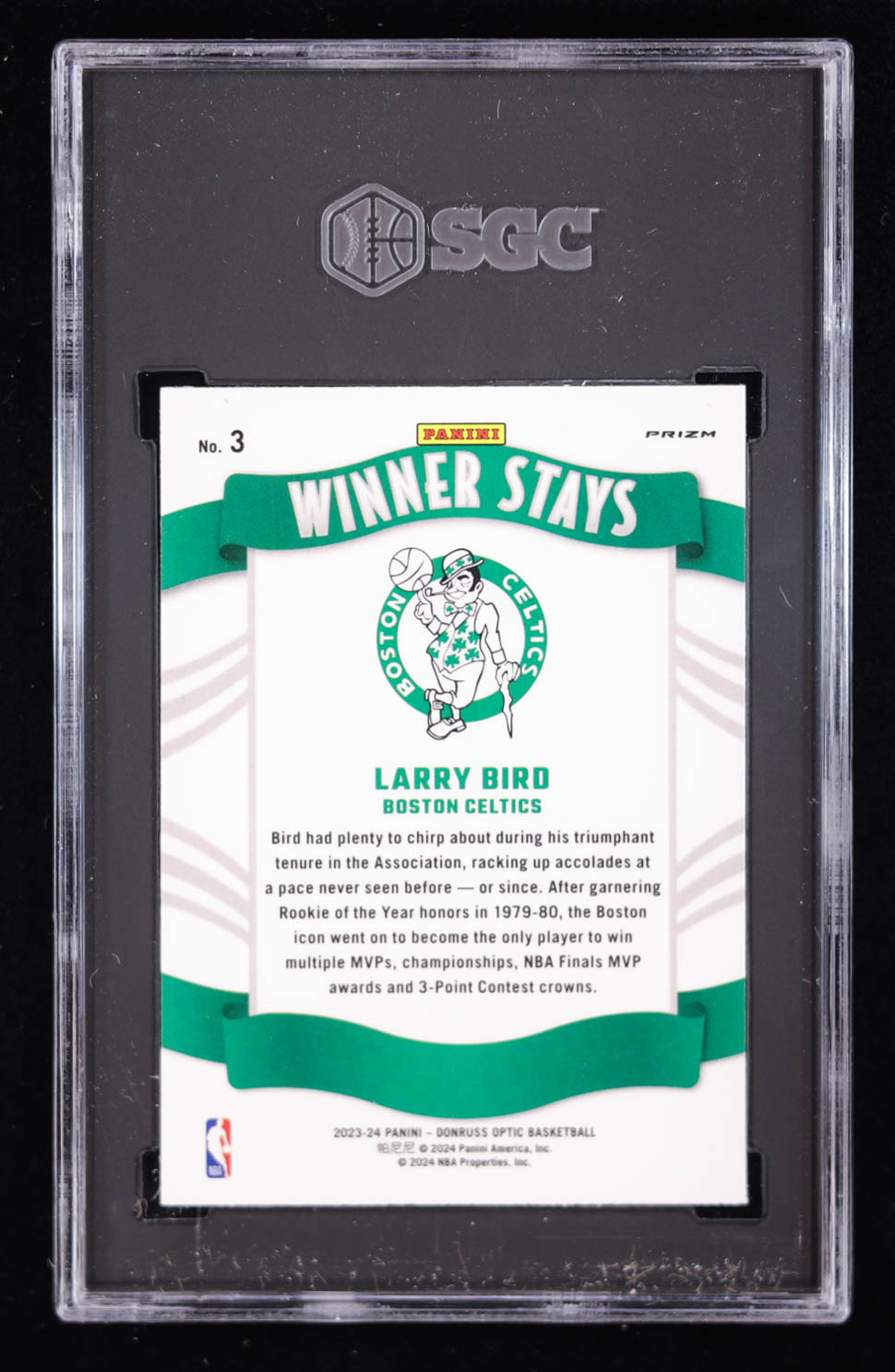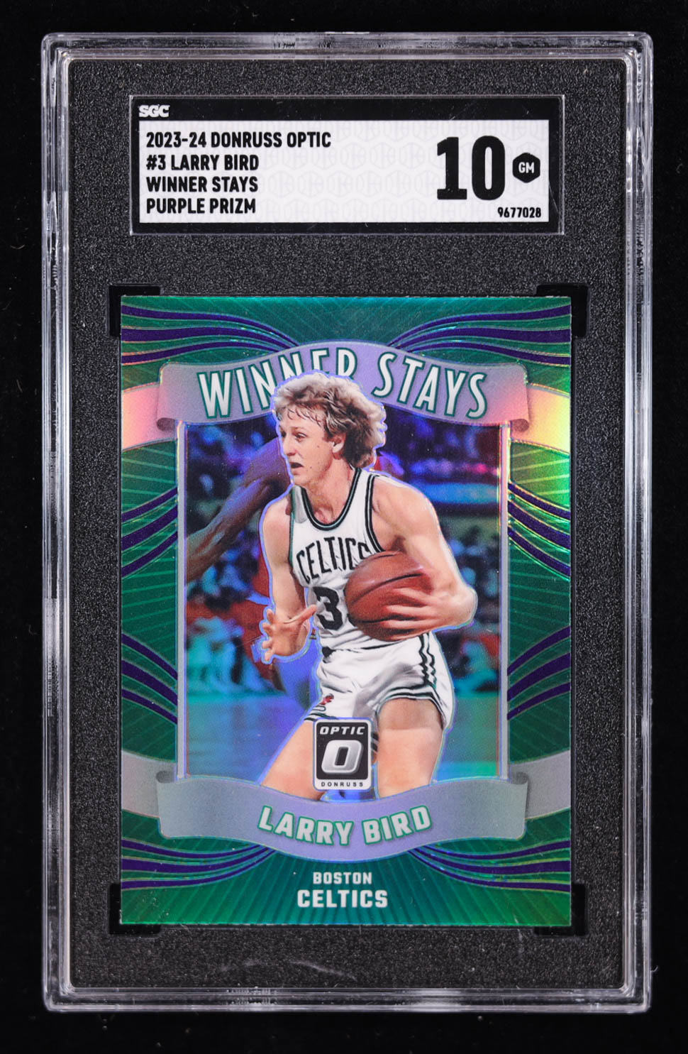 Larry Bird 2023-24 Donruss Optic Winner Stays Purple Prizm #3 (SGC 10)