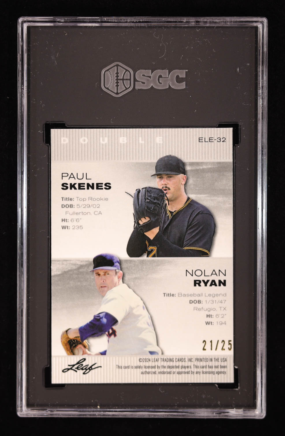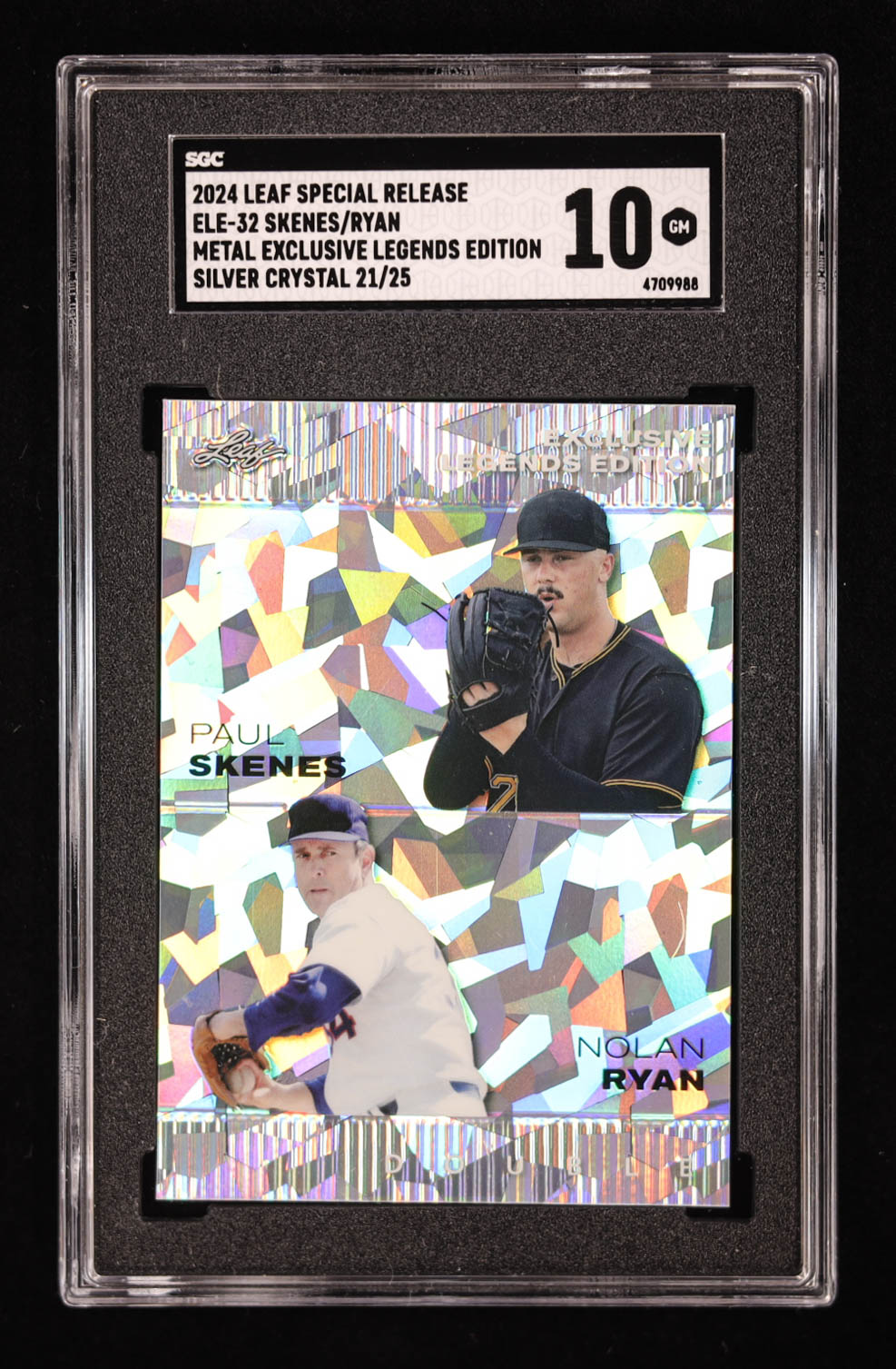 Paul Skenes / Nolan Ryan 2024 Leaf Metal Special Release Exclusive Legends Edition Crystal Silver #ELE32 RC #21/25 (SGC 10)