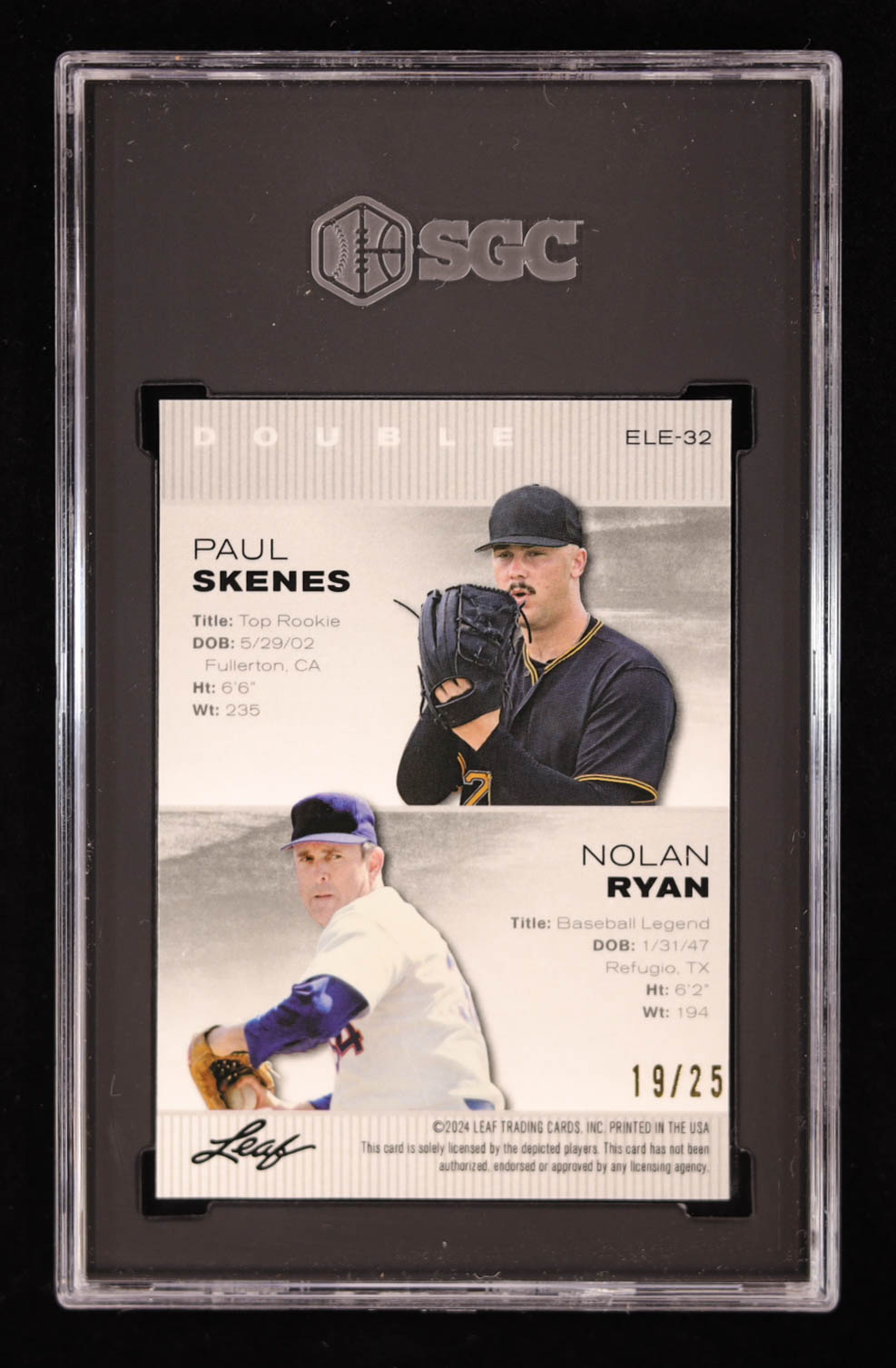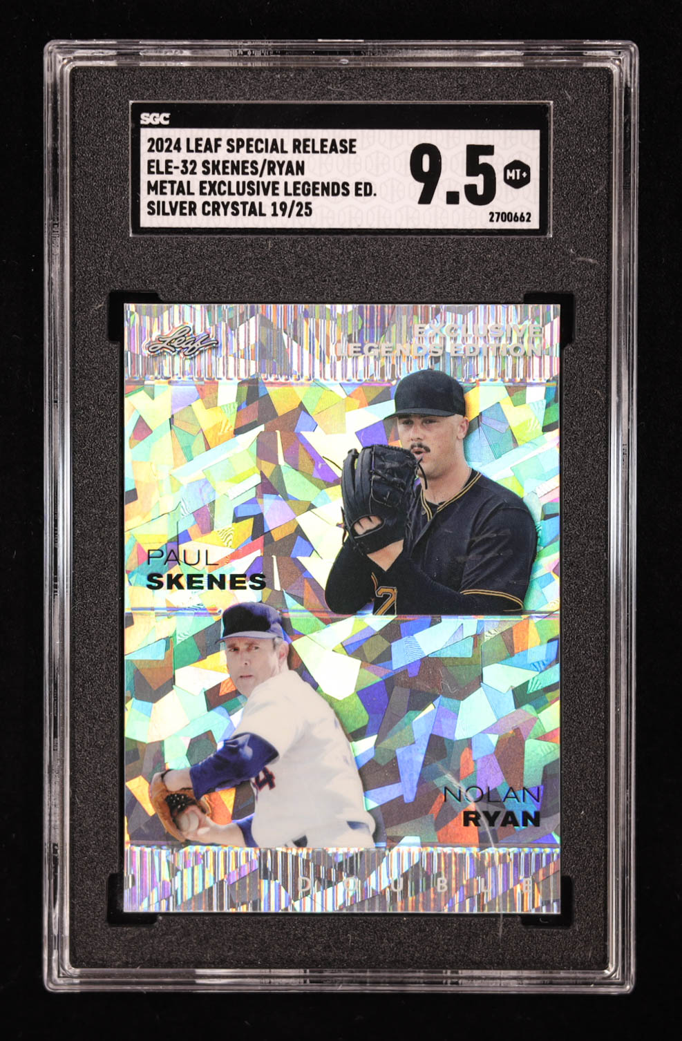 Paul Skenes / Nolan Ryan 2024 Leaf Metal Special Release Exclusive Legends Edition Crystal Silver #ELE32 RC #/25 (SGC 9.5)
