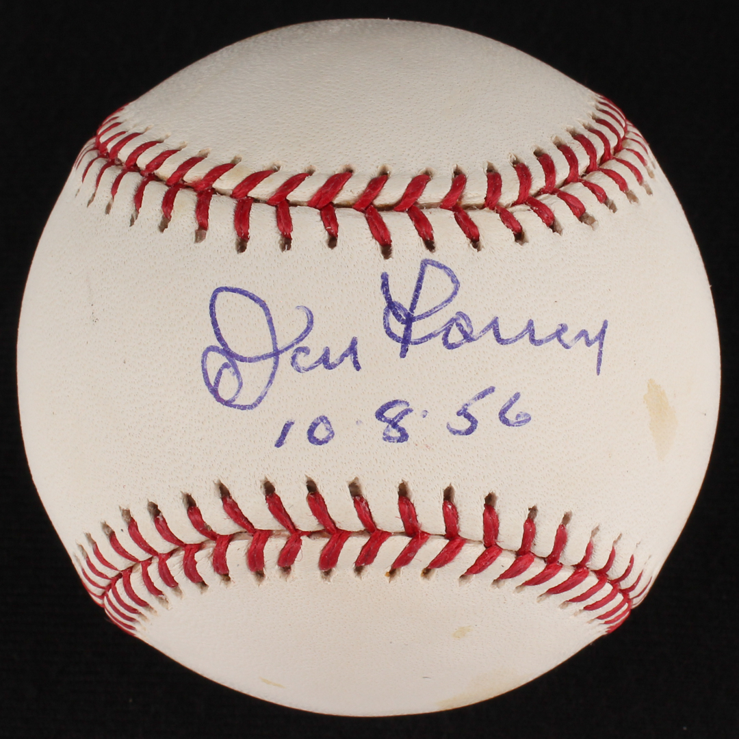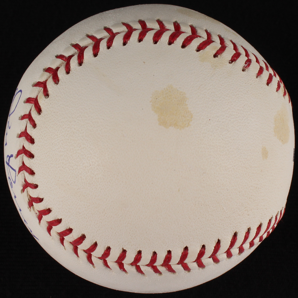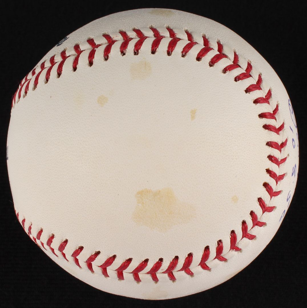 Rawlings Official Major League Baseball. Hand-signed and inscribed in blue ink pen by Don Larsen (Yankees). Please note, ball has some staining.