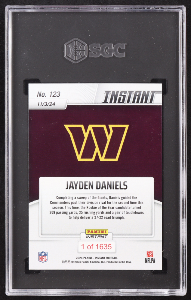 Jayden Daniels 2024 Panini Instant #123 RC (SGC 10)