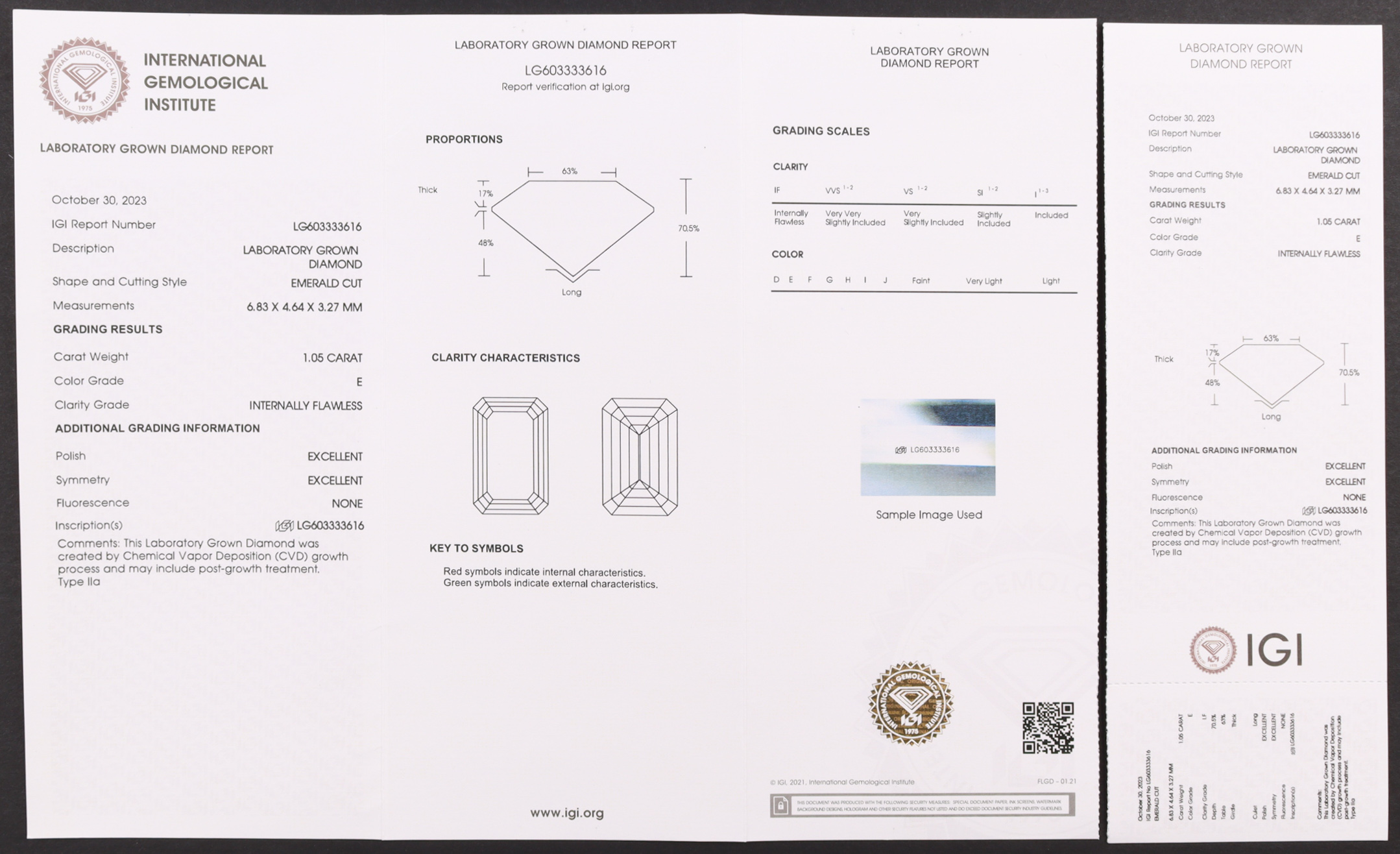 See IGI Laboratory Grown Diamond Report: LG603333616