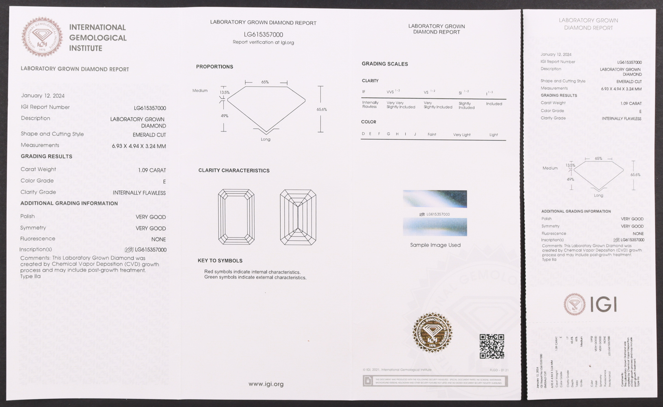 See IGI Laboratory Grown Diamond Report: LG615357000