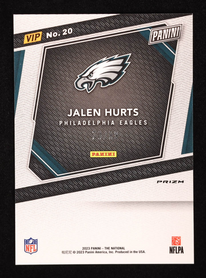 Jalen Hurts 2023 Panini National Convention VIP Gold Packs Green Sparkle #20 #70/99