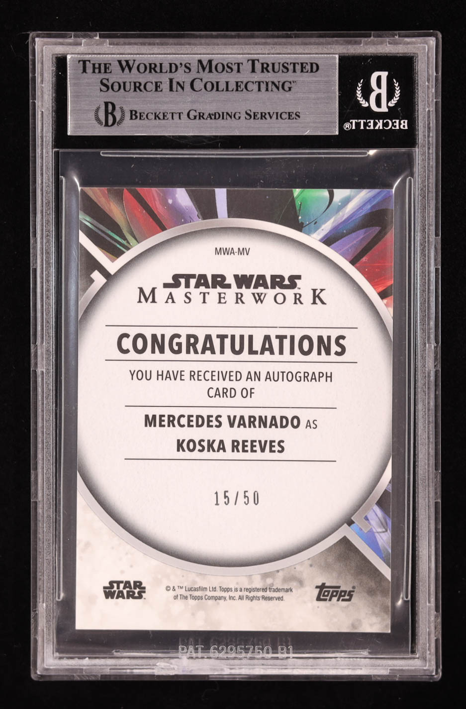 Mercedes Varnado as Koska Reeves 2022 Topps Star Wars Masterwork Autographs Rainbow Foil #MWAMV #15/50 (BGS 8.5)