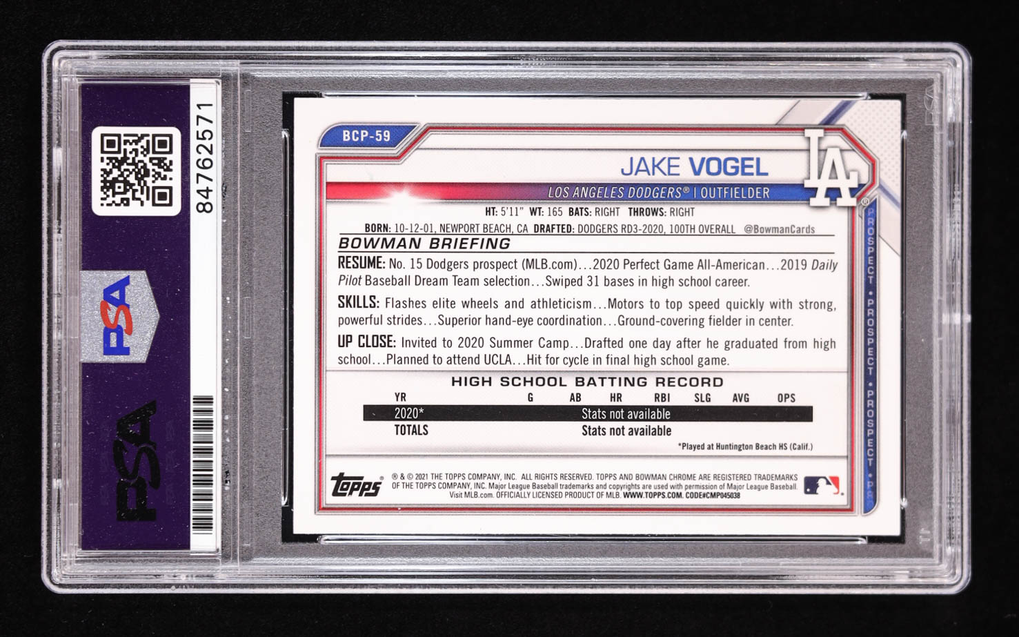 Jake Vogel Signed 2021 Bowman Chrome Sapphire Prospects #BCP59 RC (PSA | Auto 10)