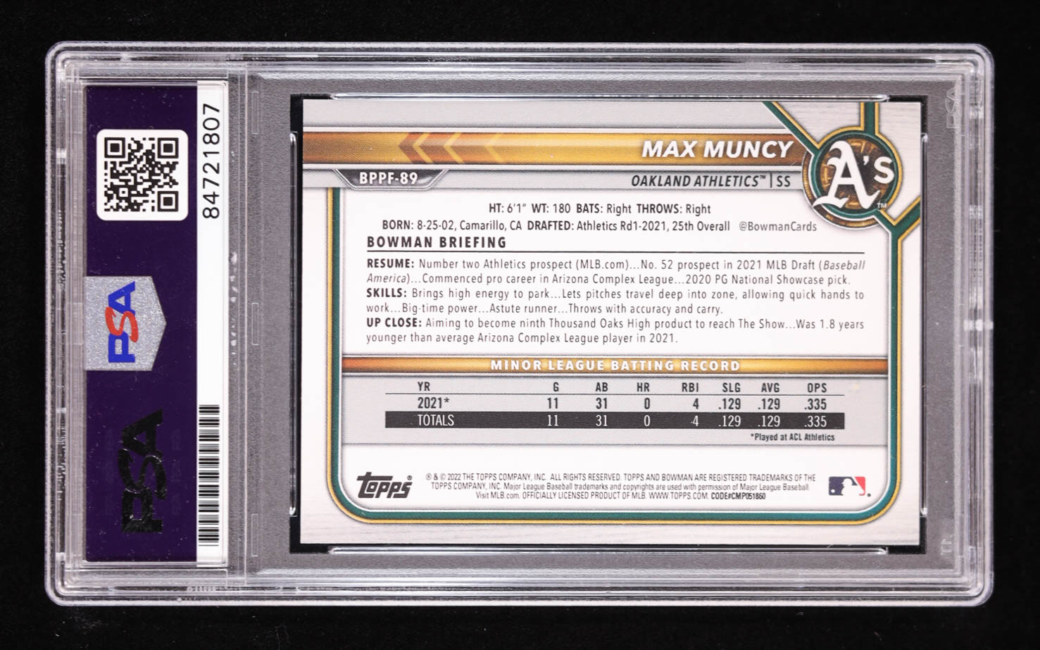 Max Muncy Signed 2022 Bowman 1st Edition #BPPF89 RC (PSA)