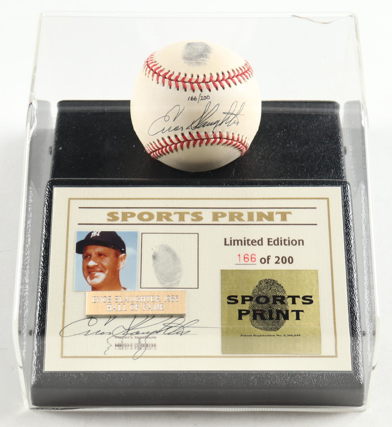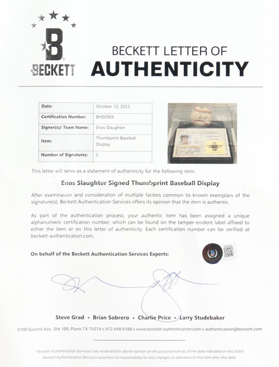Enos Slaughter Signed LE ONL Baseball Display with Thumbprint (Beckett)