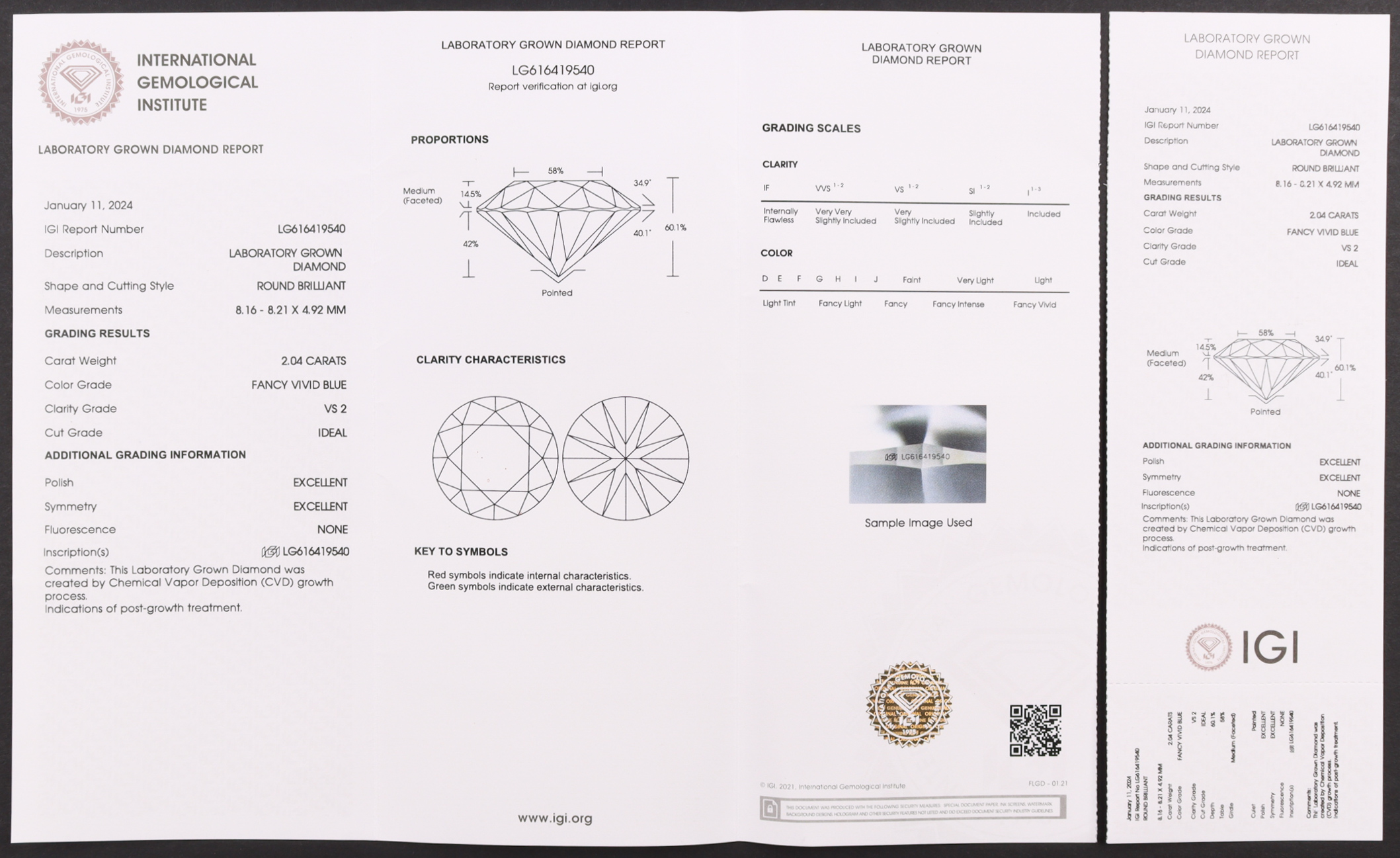 Please See IGI Laboratory Grown Diamond Report#LG616419540.