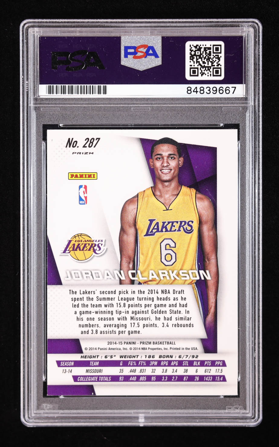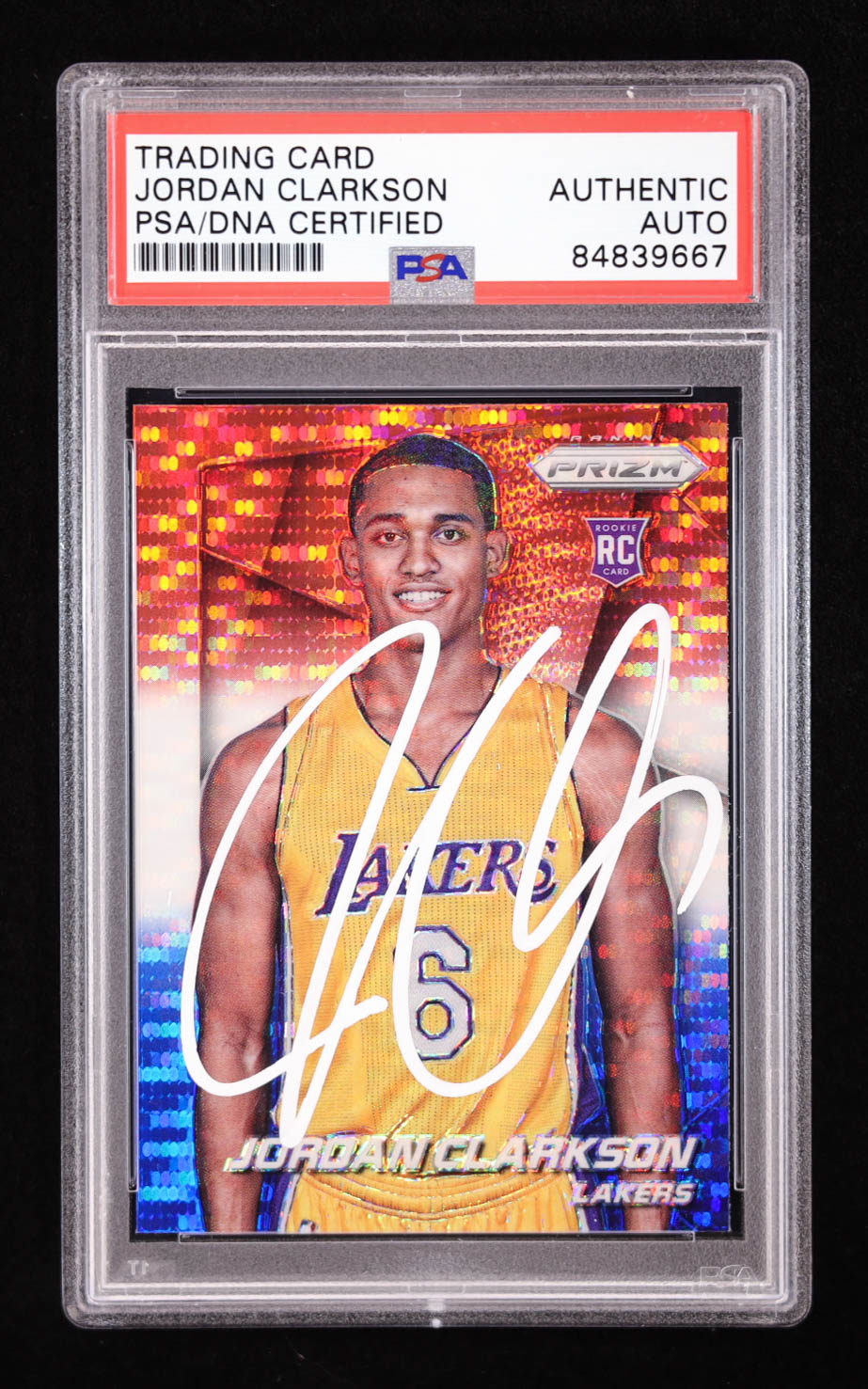Jordan Clarkson Signed 2014 Panini Prizm Red White & Blue Pulsar #287 RC (PSA)