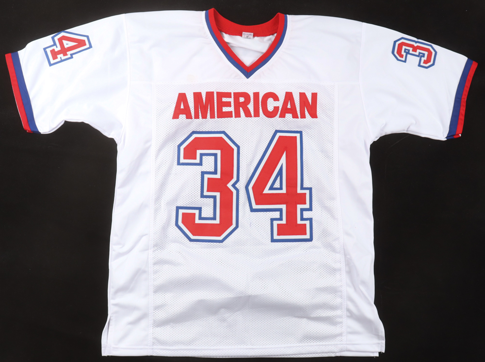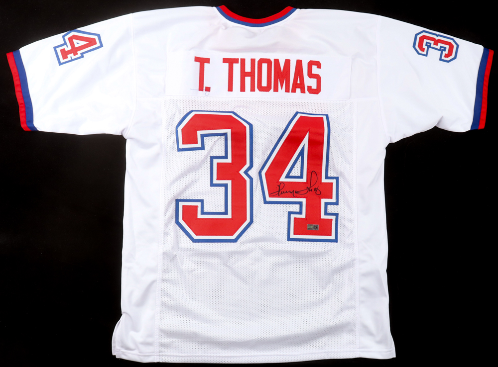 Custom jersey with everything sewn on, size XL. Hand-signed by Thurman Thomas (HOF).