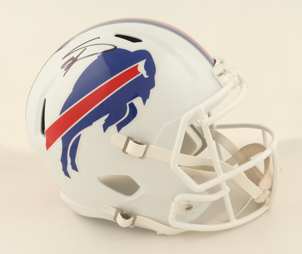 Riddell Buffalo Bills full-size replica speed helmet. Hand-signed by Stefon Diggs.