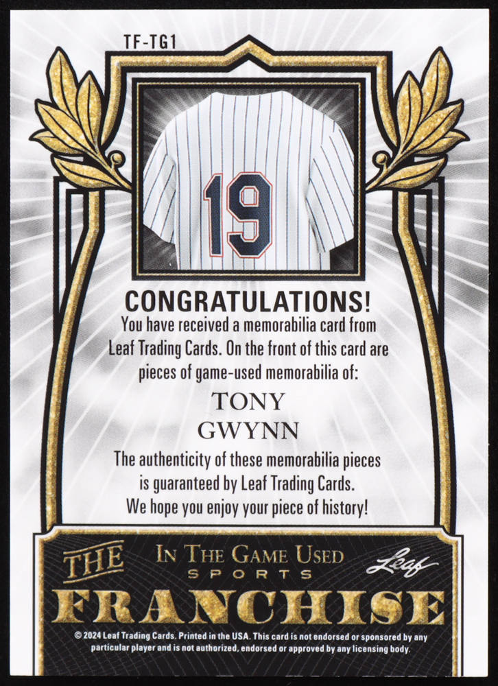 Tony Gwynn 2024 Leaf ITG Used The Franchise Spectrum Green #TFTG1 #1/3