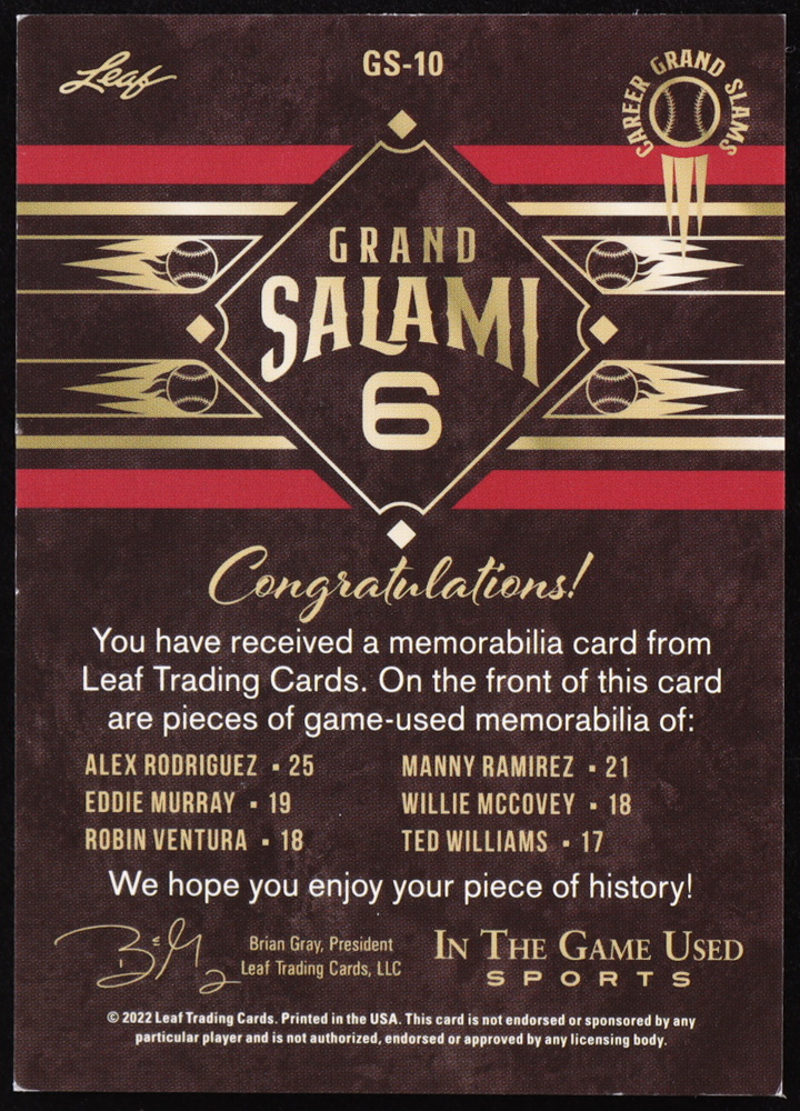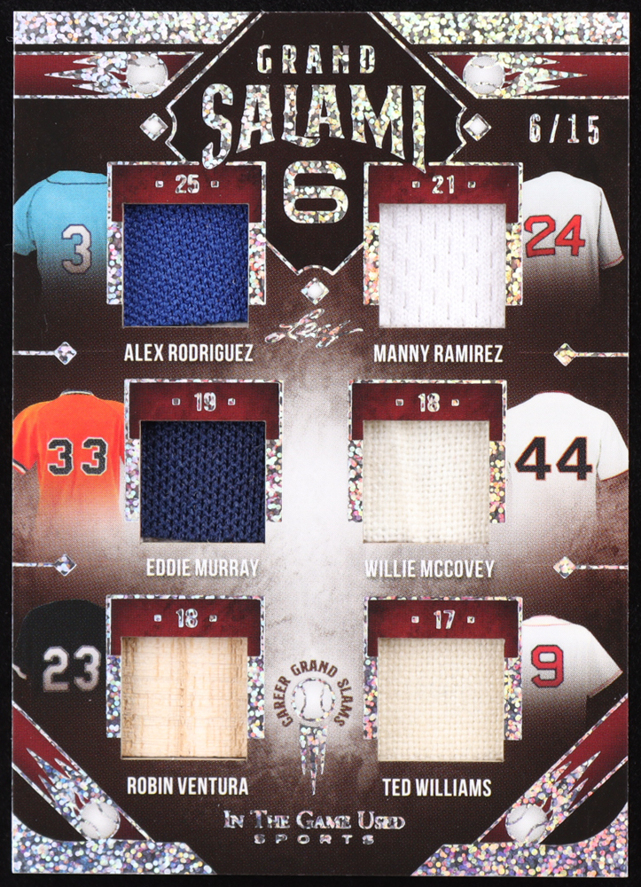 2022 Leaf ITG Used Grand Salami Sparkle Silver #GS10 Alex Rodriguez / Manny Ramirez / Eddie Murray / Willie McCovey / Robin Ventura / Ted Williams #06/15
