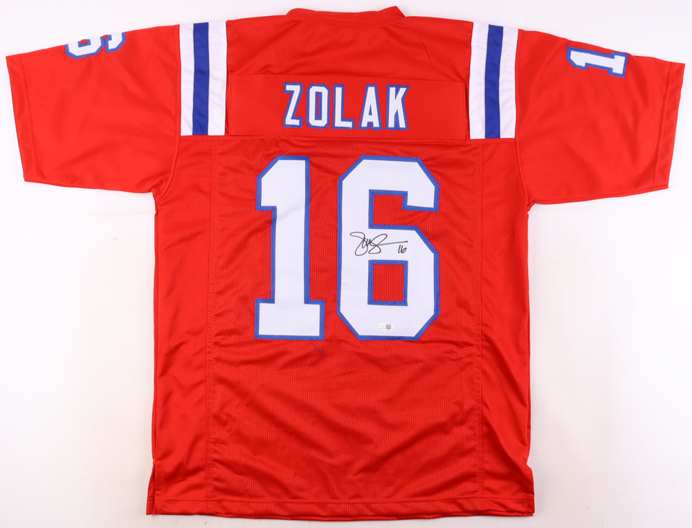 Custom jersey with everything sewn on, size XL. Hand-signed by Scott Zolak.