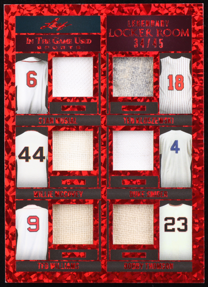 2022 Leaf ITG Used Legendary Locker Room Pattern Red #LR15 Stan Musial / Willie McCovey / Duke Snider / Ted Williams / Bobby Thomson / Ted Kluszewski #34/45