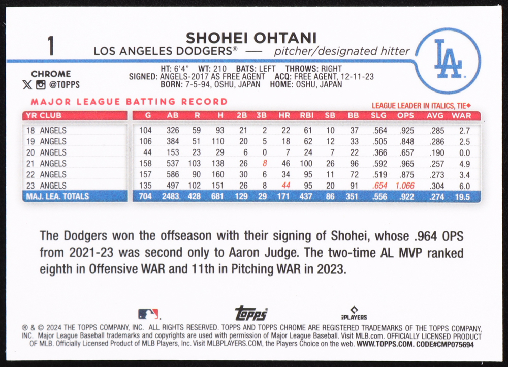Shohei Ohtani 2024 Topps Chrome Prism Refractors #1