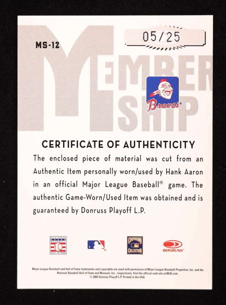 Hank Aaron 2005 Donruss Classics Membership VIP Bat #MS12 #05/25