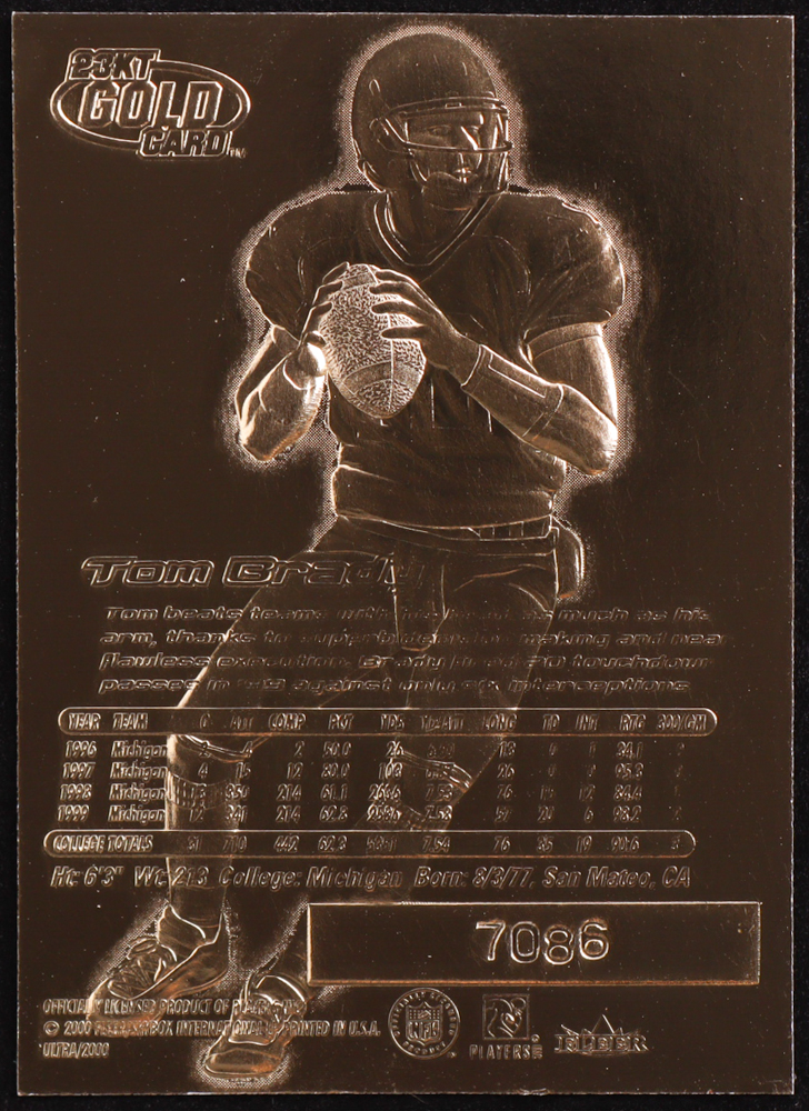 Tom Brady 2000 Fleer Ultra 23Kt Gold Blue Metallic Signature Series RC #7086