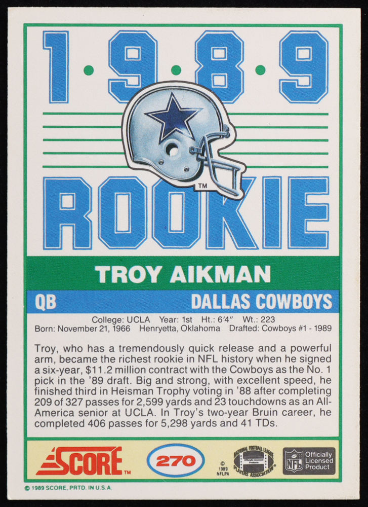 Troy Aikman 1989 Score #270 RC