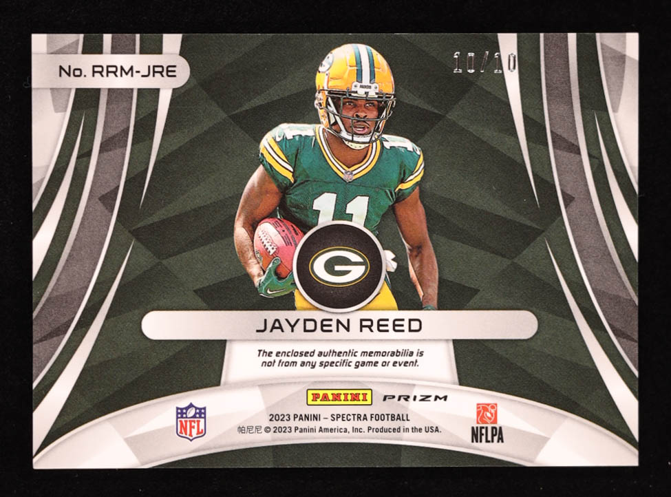 Jayden Reed 2023 Panini Spectra Rising Rookie Materials Neon Orange #18 #10/10 RC