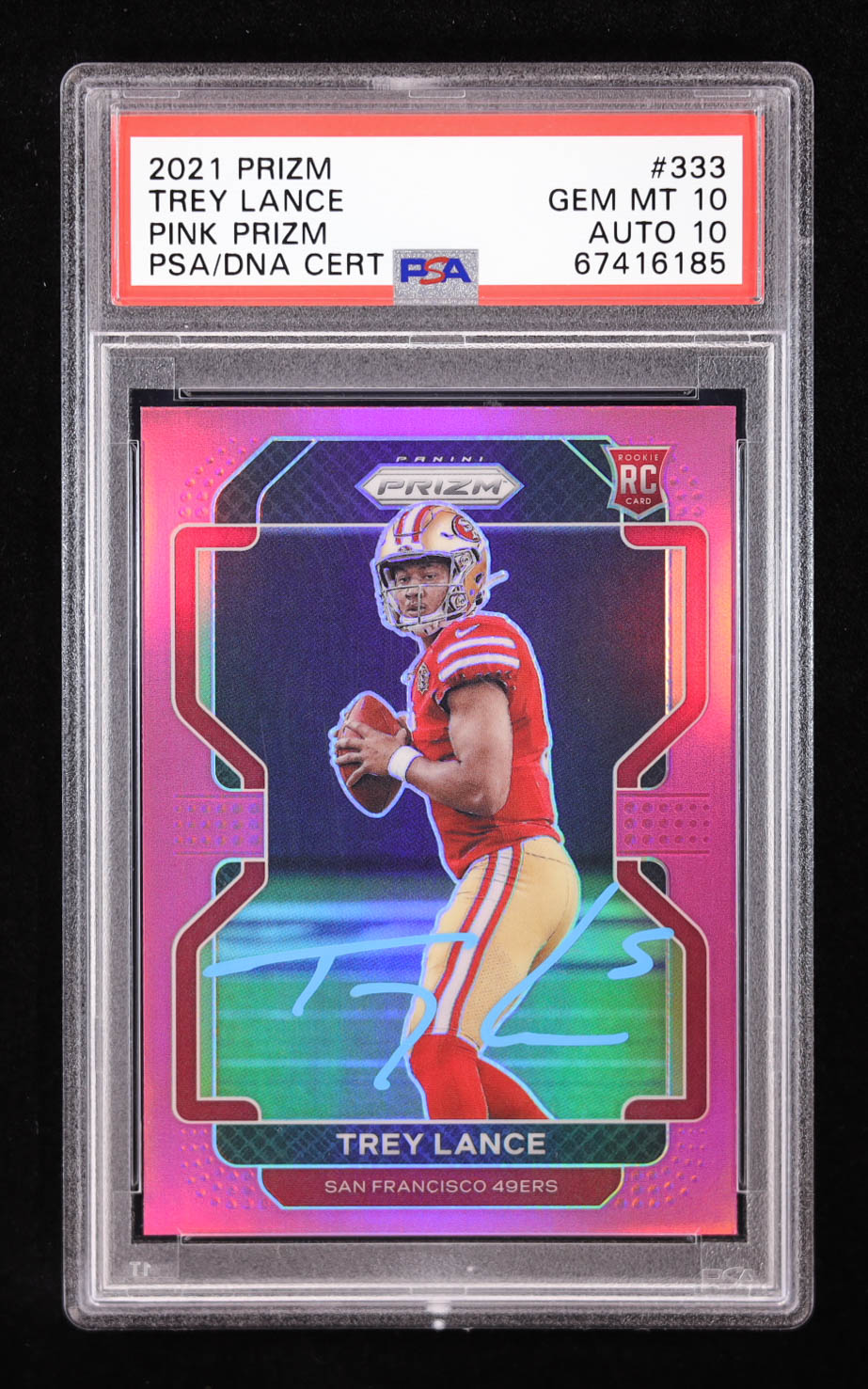 Trey Lance Signed 2021 Panini Prizm Prizms Pink #333 RC (PSA 10 | Auto 10)