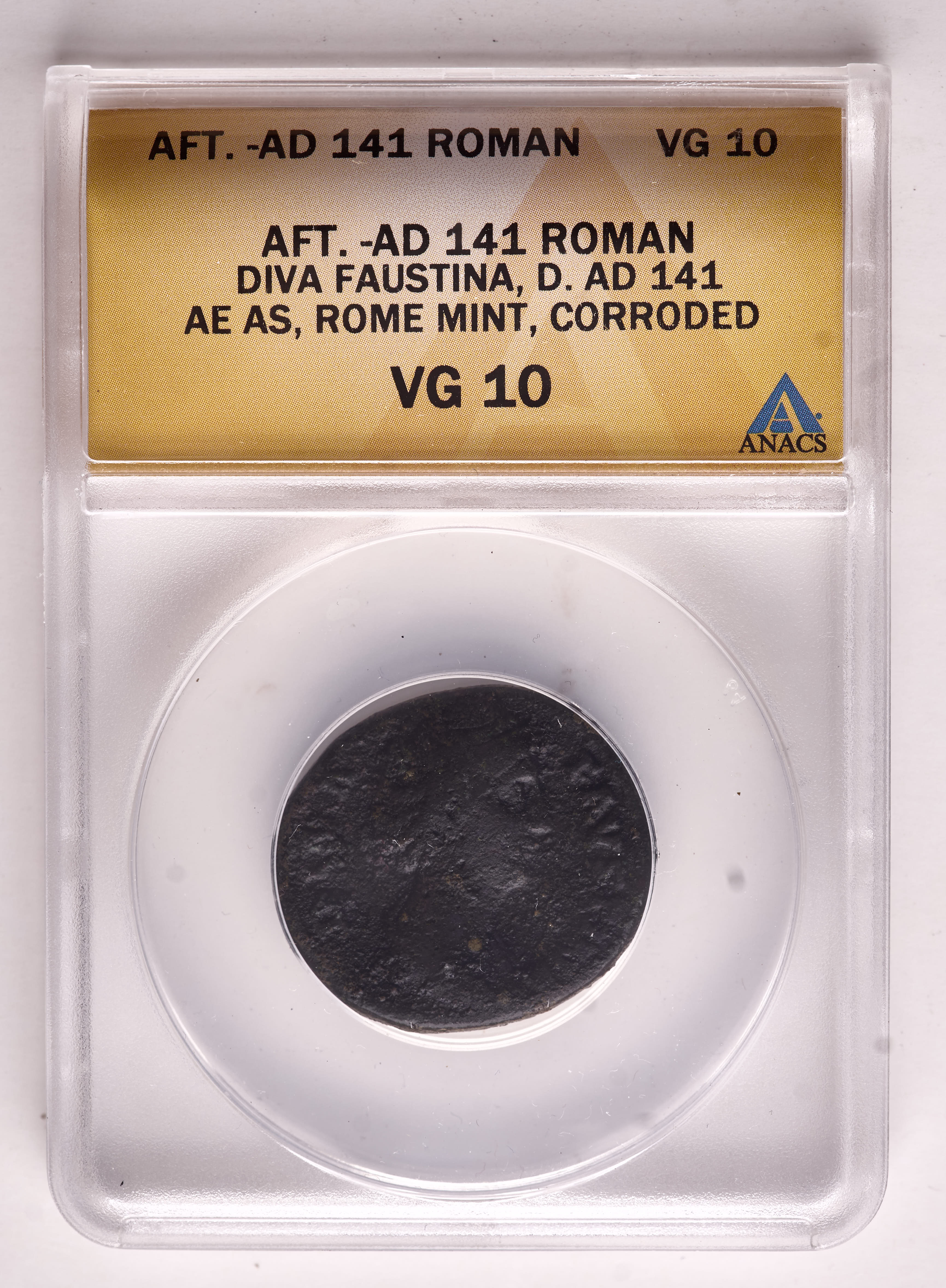 Diva Faustina Senior (Died A.D. 141) Ancient Roman Empire AE AS Coin Rome Mint (ANACS VG10 Corroded)