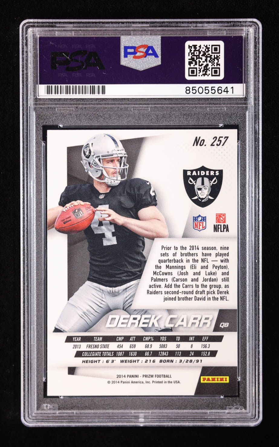 Derek Carr Signed 2014 Panini Prizm #257 RC (PSA | Auto 10)