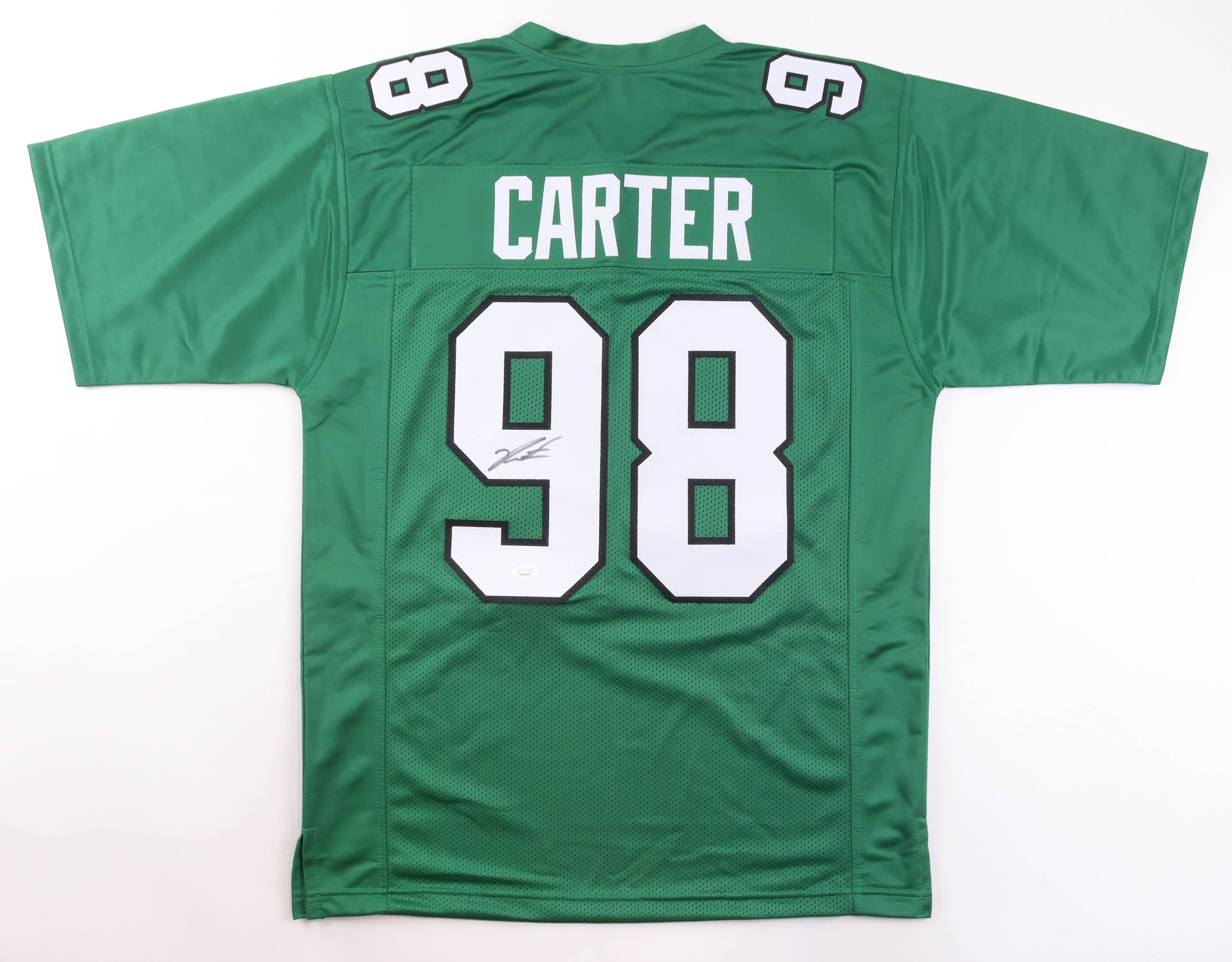 Custom jersey with everything sewn on, size XL. Hand-signed by Jalen Carter.