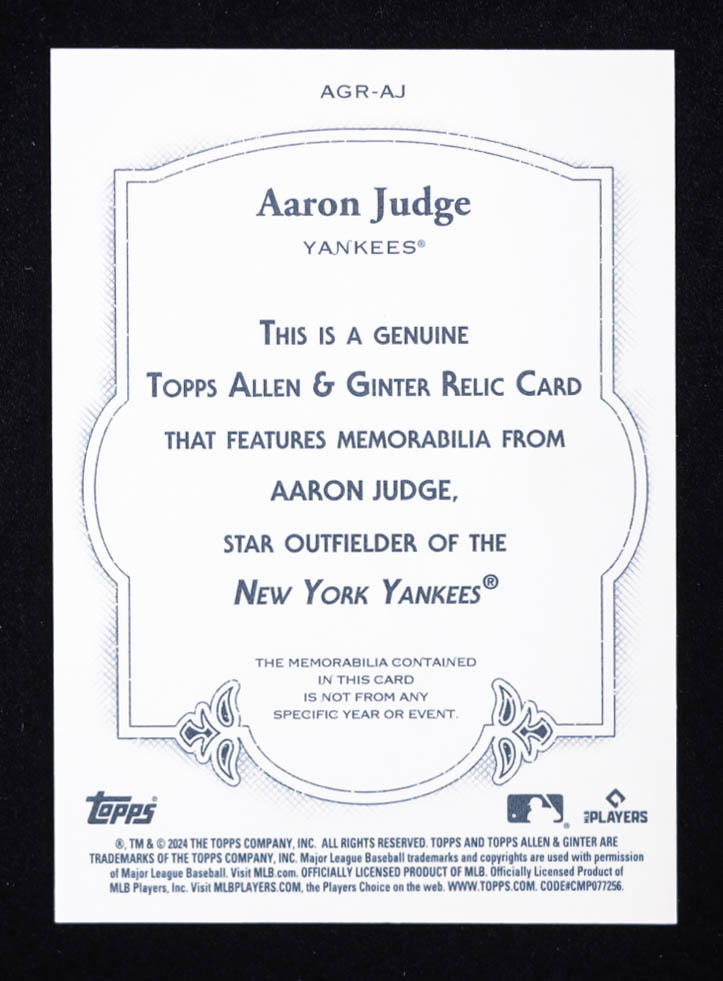 Aaron Judge 2024 Topps Allen and Ginter Relics #AGRAJ A