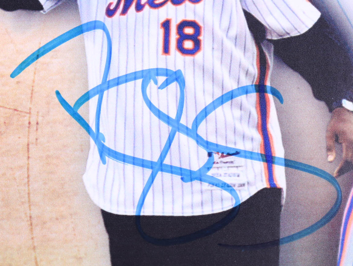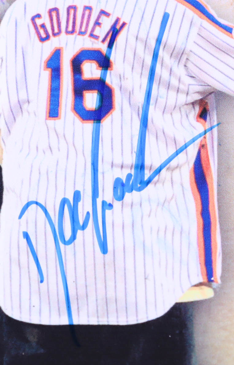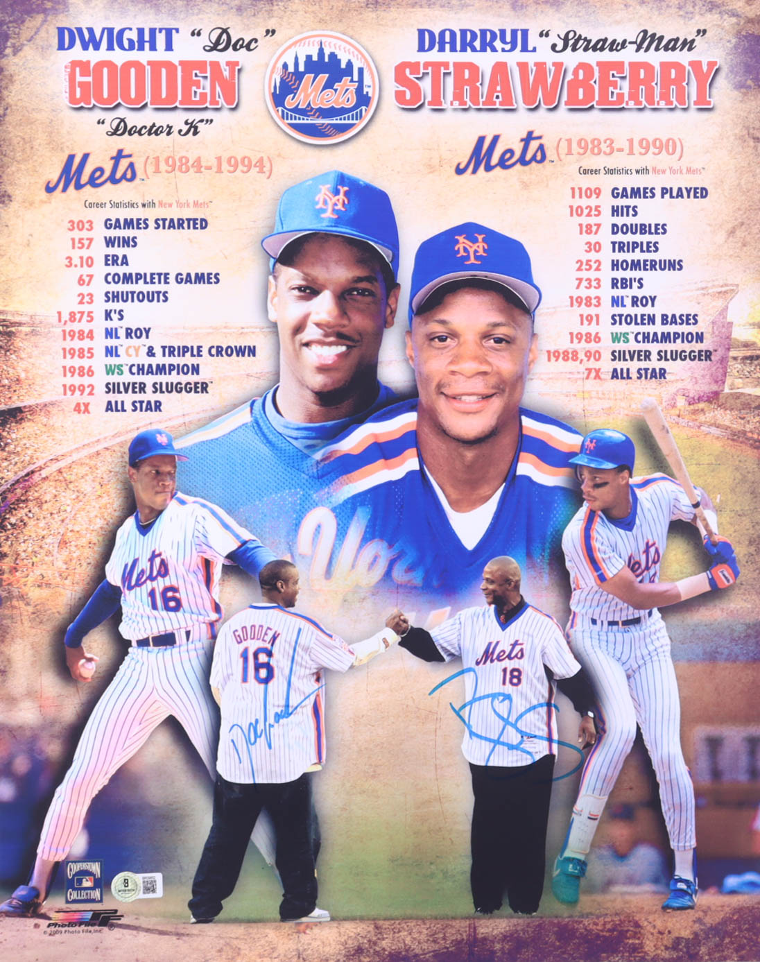 Photo measures 16" x 20" in size and has been hand-signed by Dwight "Doc" Gooden (New York Mets) as well as Darryl "Straw-Man" Strawberry (New York Mets).