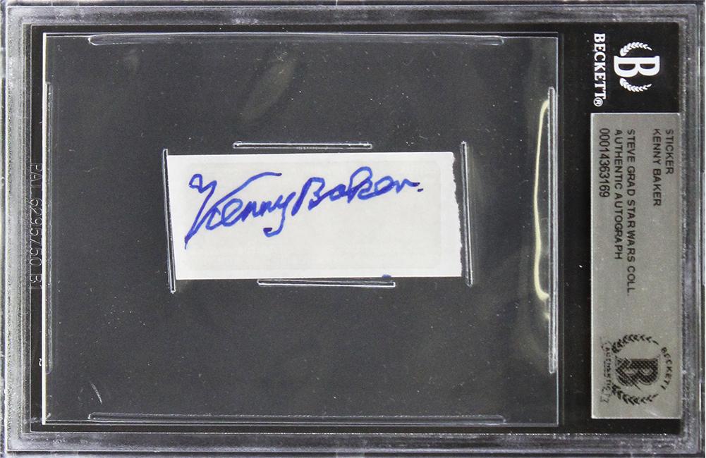 Sticker measures approximately 1" x 2" in size and has been hand-signed by Kenny Baker (D. 2016).