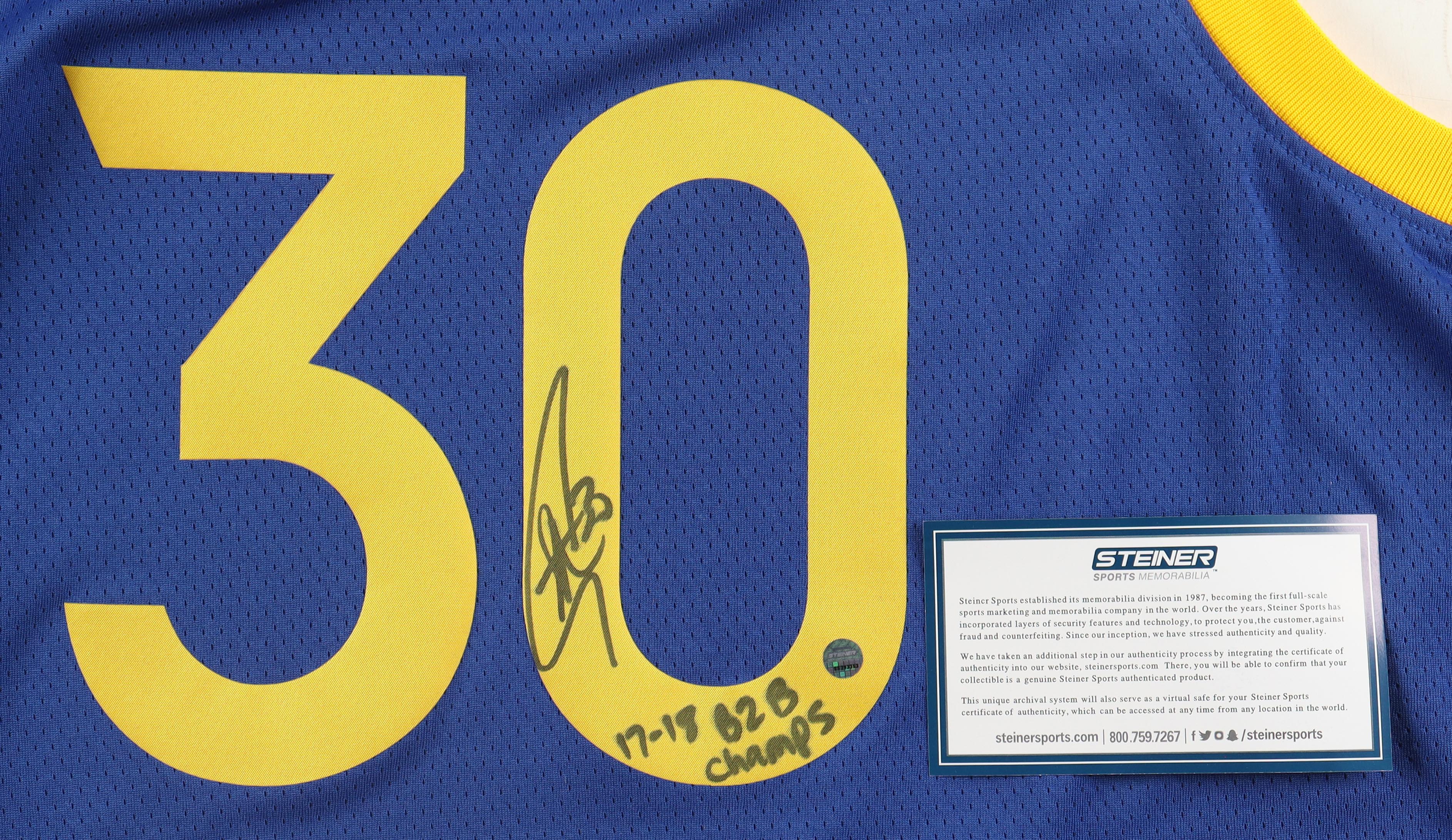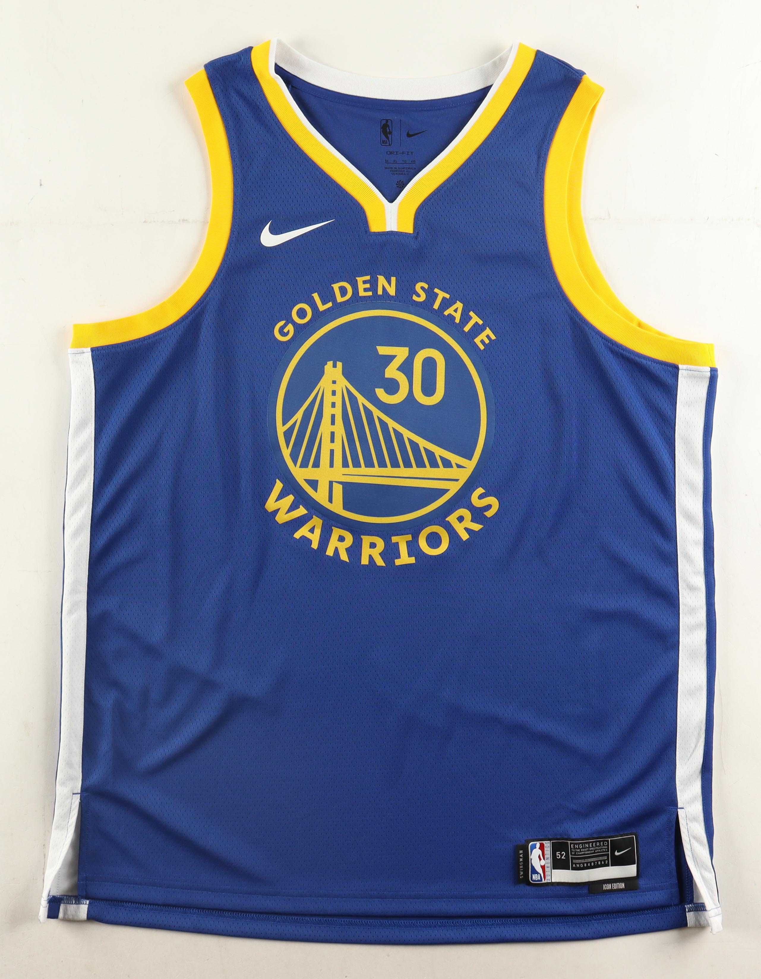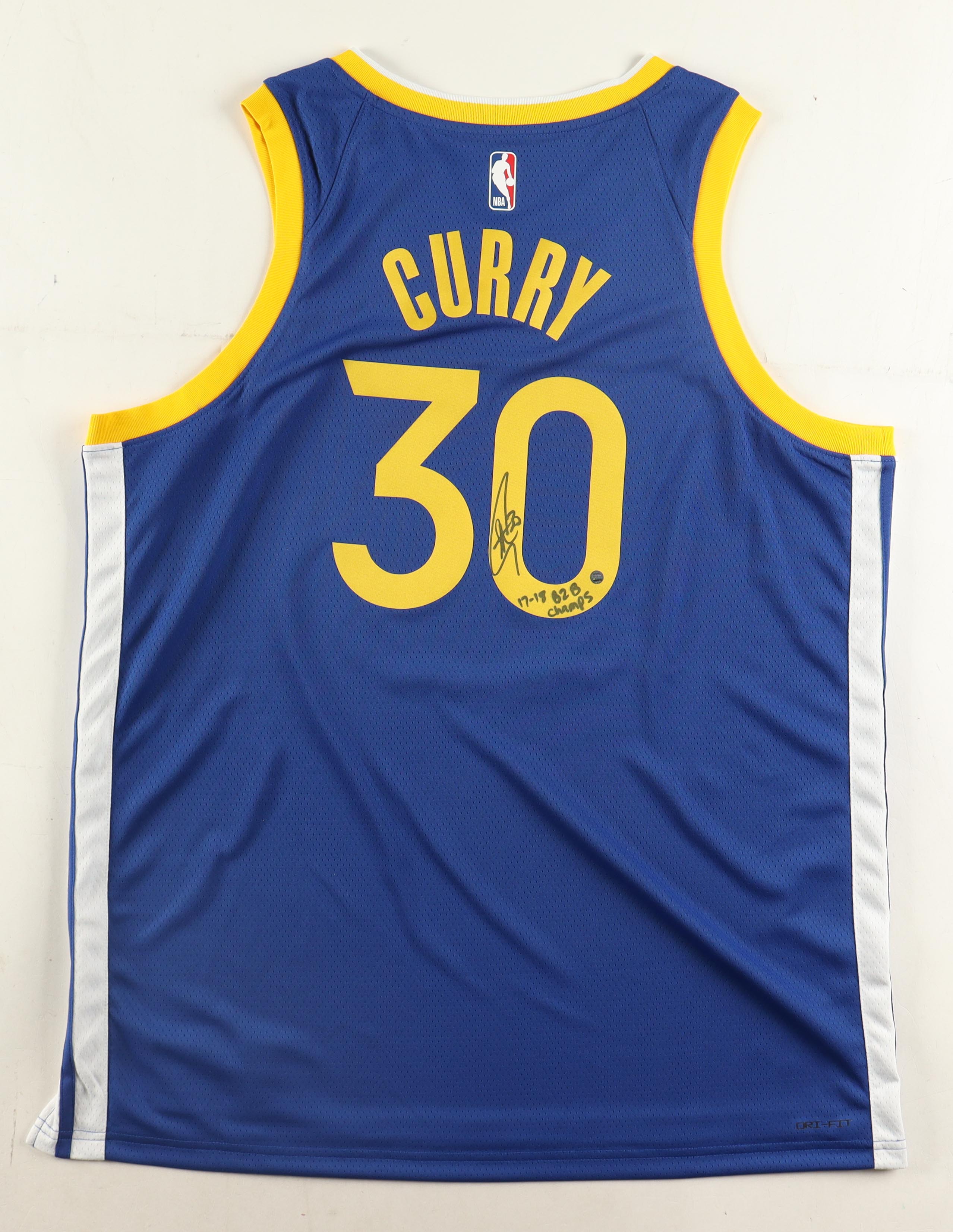 Nike Authentic Swingman jersey with everything pressed on, size XL. Hand-signed and inscribed by Stephen Curry. Please note, the inscription has bled.