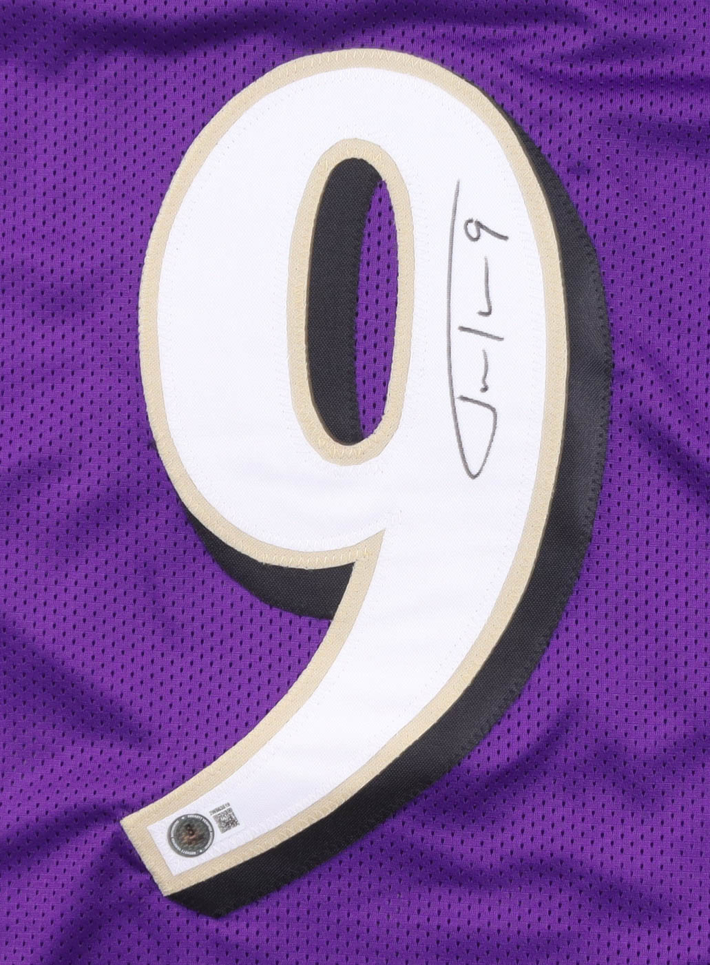 Custom jersey with everything sewn on, size XL. Hand-signed by Justin Tucker (Baltimore Ravens).
