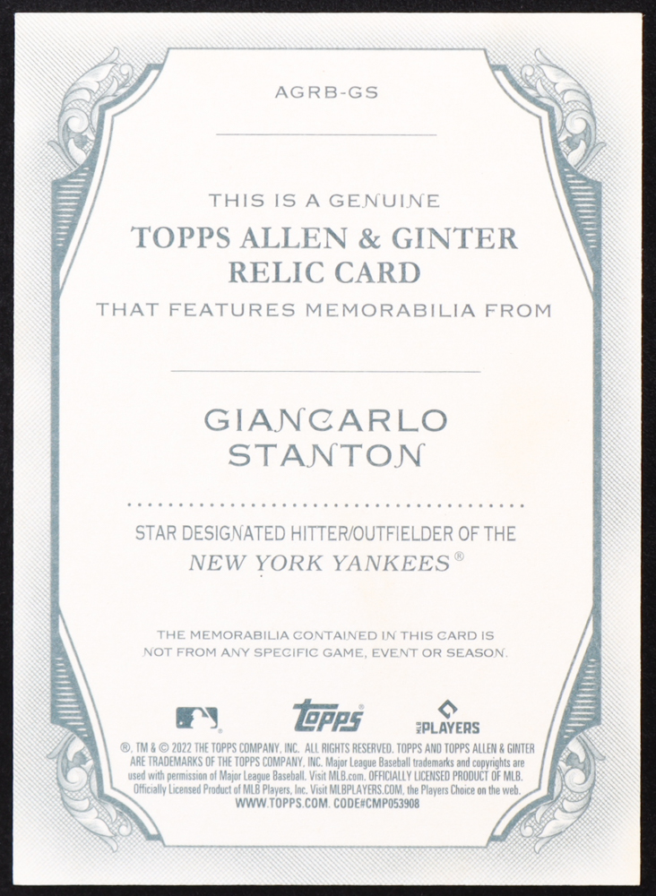 Giancarlo Stanton 2022 Topps Allen and Ginter Relics #AGRBGS