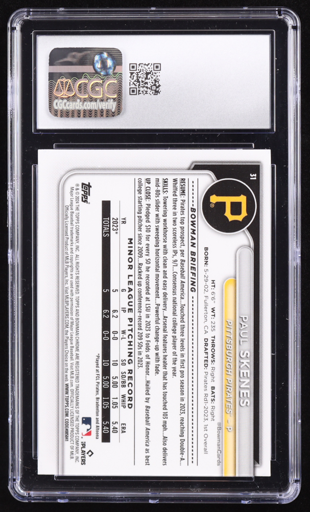 Paul Skenes 2024 Bowman Chrome #31 RC (CGC 10)
