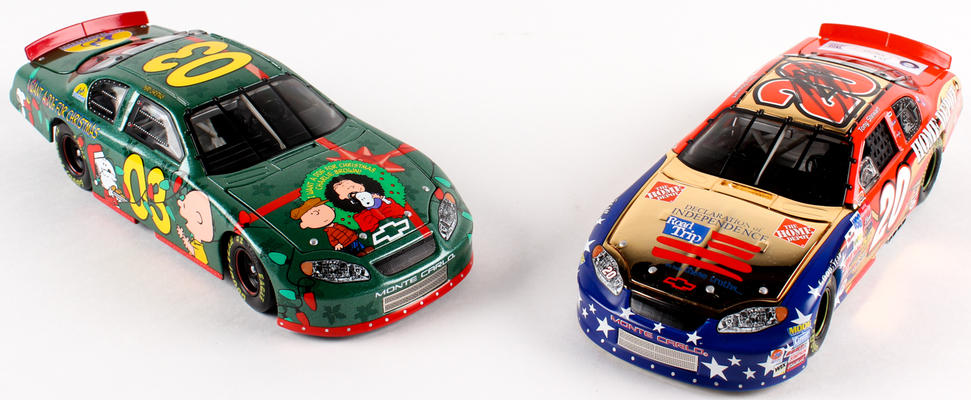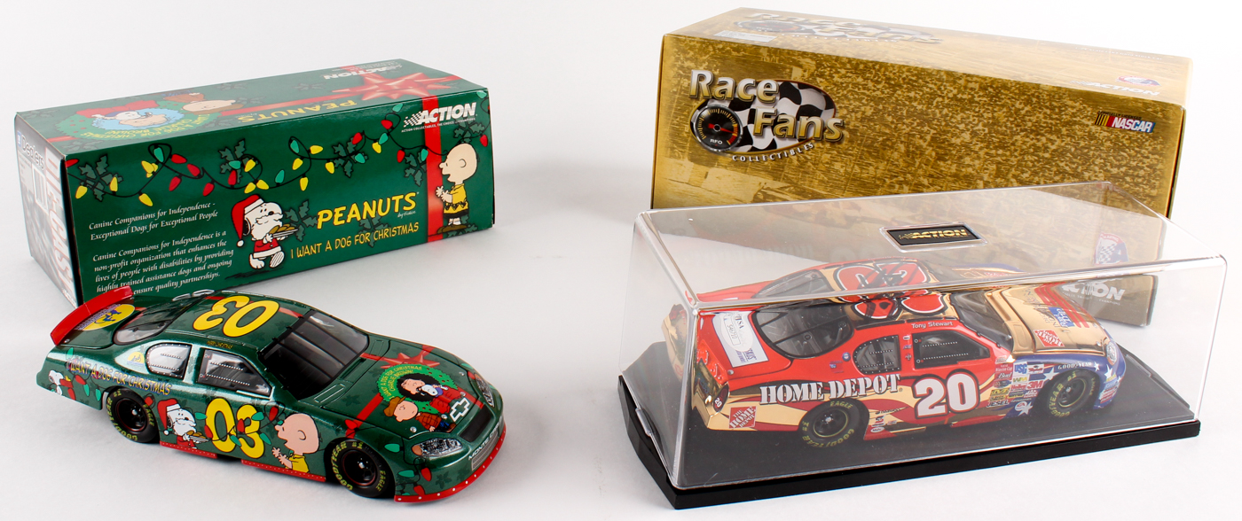 Lot of (2) Tony Stewart 1:24 Scale Diecast Cars with (1) Signed Home Depot 24KT Gold & (1) Peanuts GM (JSA COA)
