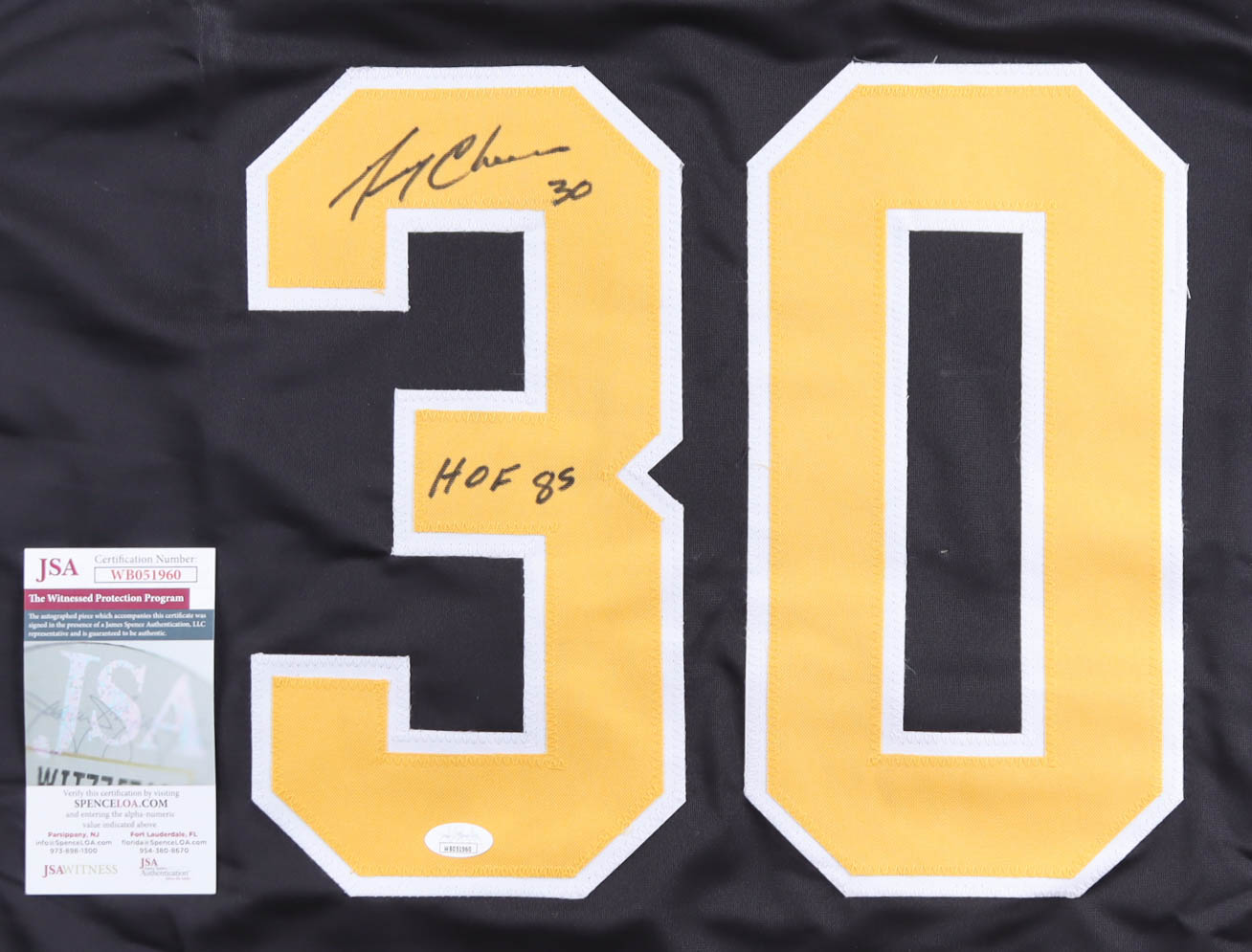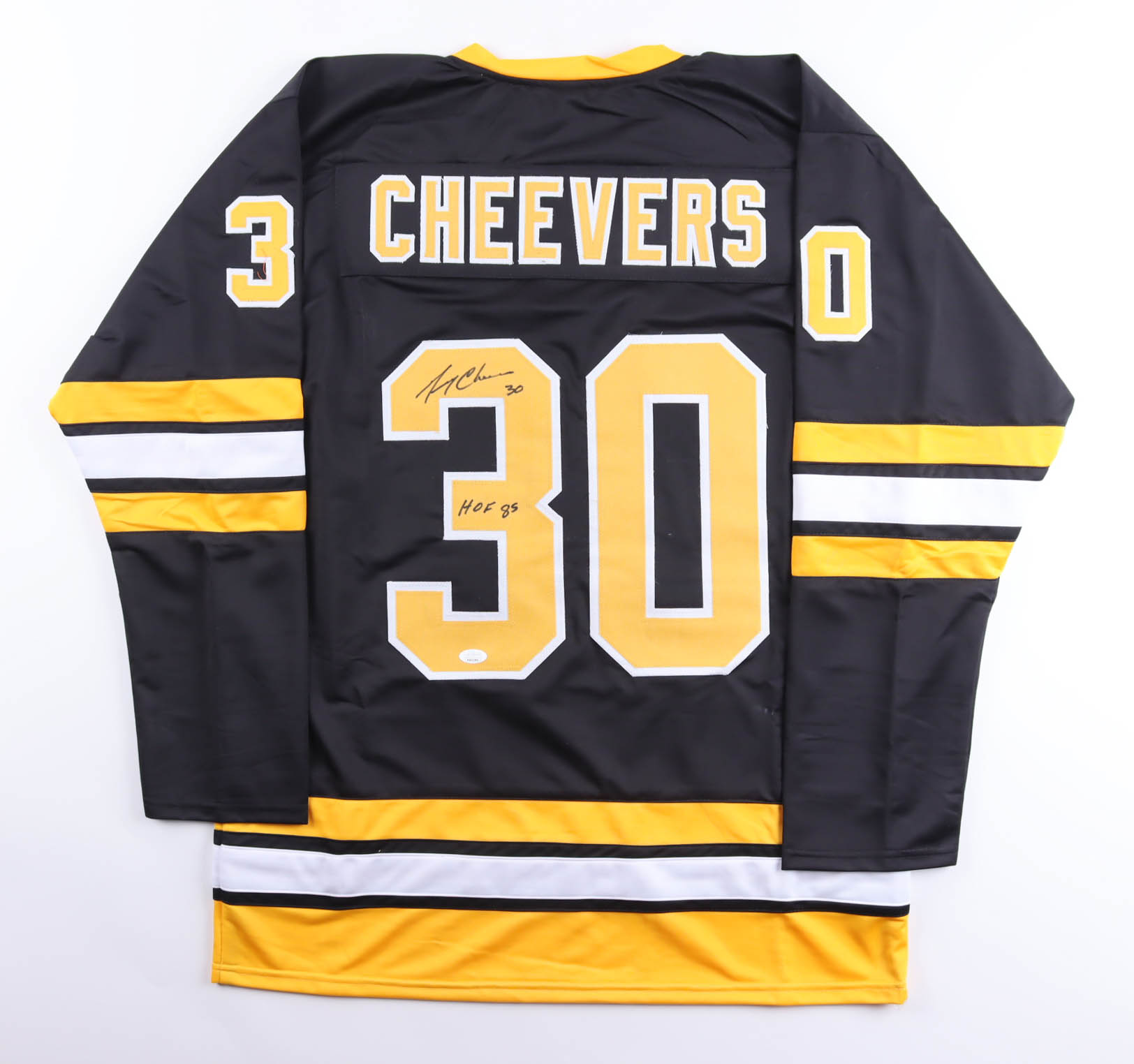 Gerry Cheevers Signed Jersey Inscribed "HOF 85" (JSA)