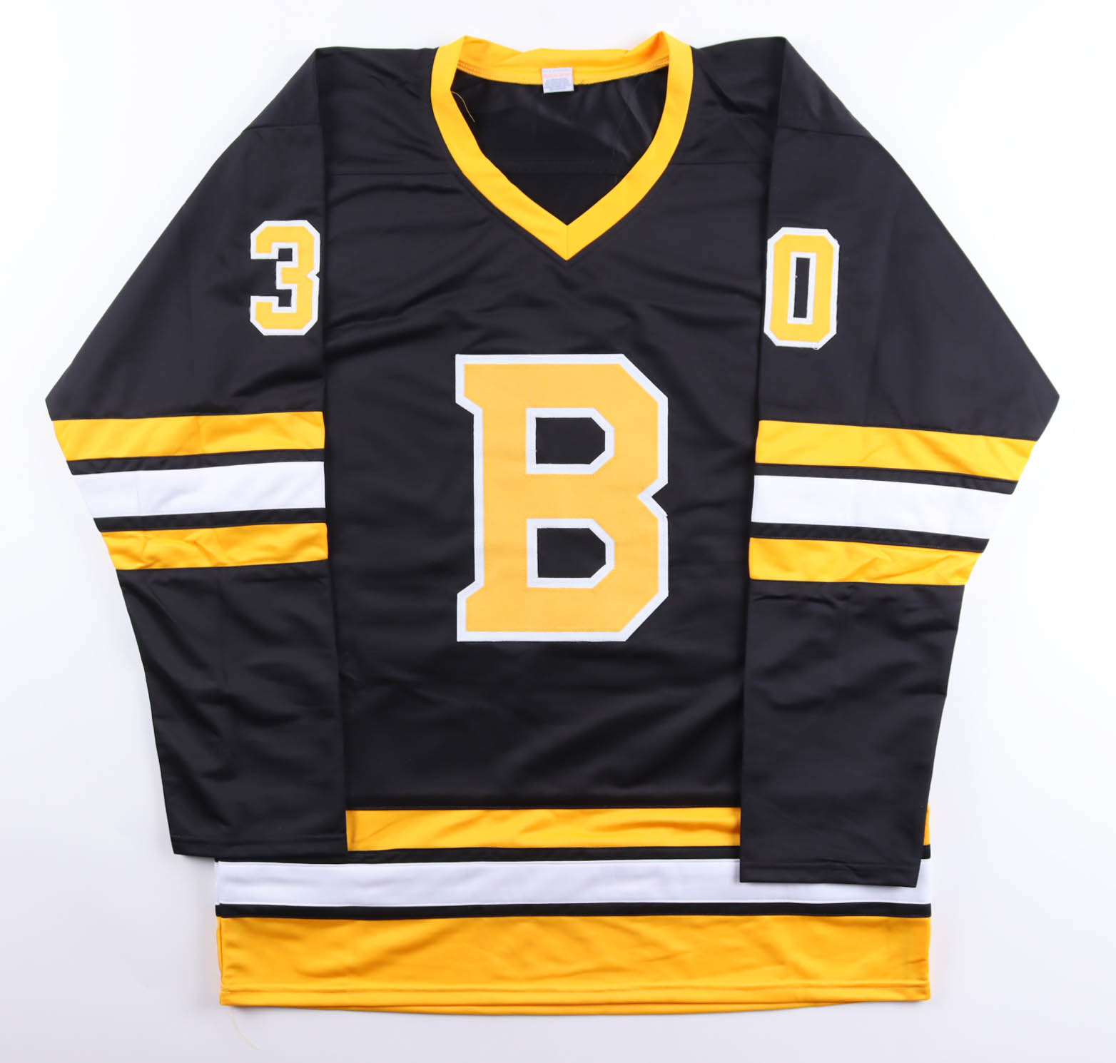 Custom jersey. Everything is sewn on, size XL. Hand-signed and inscribed by Gerry Cheevers (HOF).
