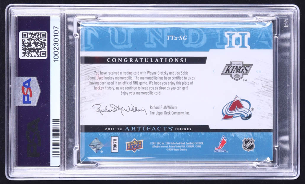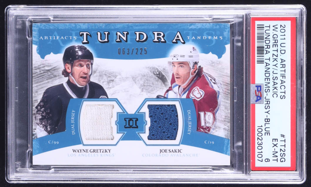 Wayne Gretzky / Joe Sakic 2011-12 Artifacts Tundra Tandems Jerseys Blue #TT2SG #063/225 (PSA 6)