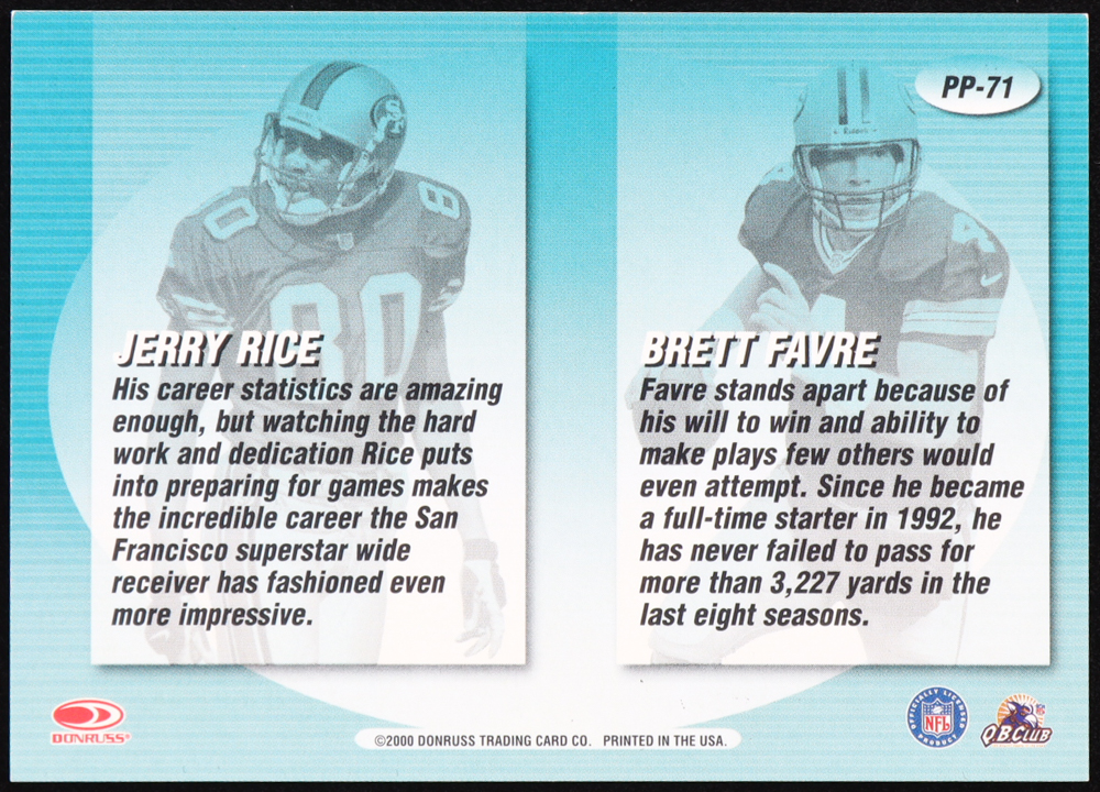 Brett Favre / Jerry Rice 2000 Donruss Preferred QBC Pen Pals #PP71