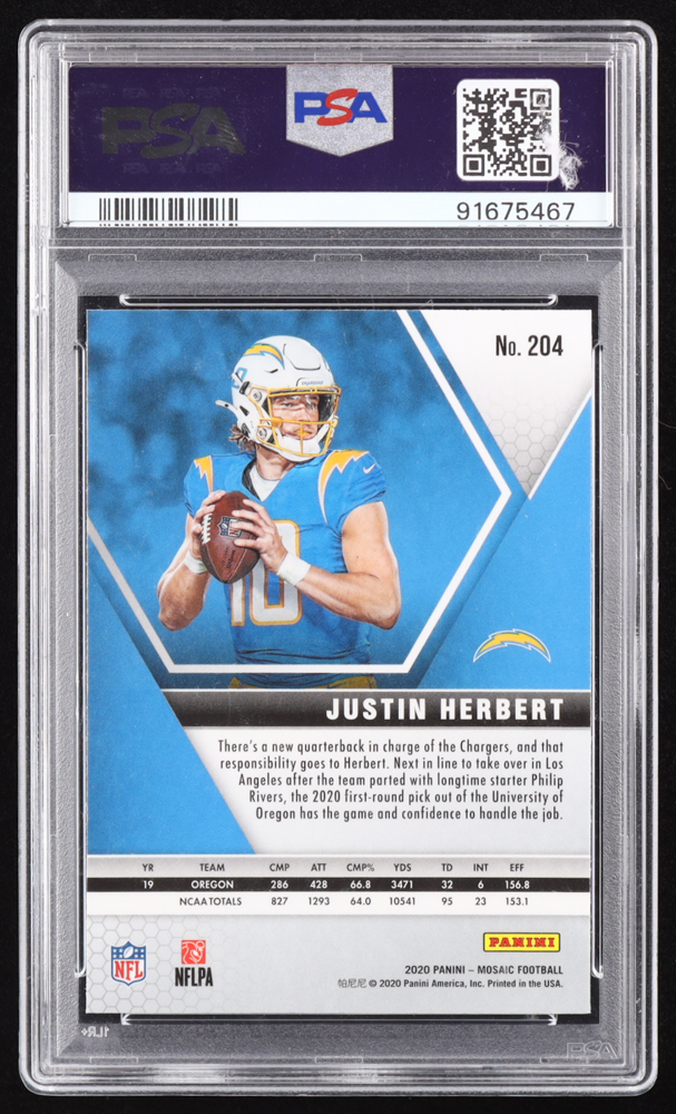 Justin Herbert 2020 Panini Mosaic #204 RC (PSA 10)