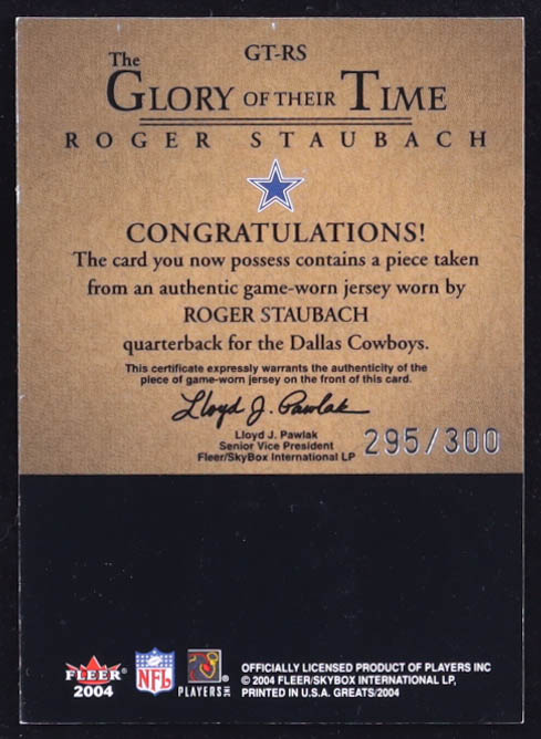 Roger Staubach 2004 Greats of the Game Glory of Their Time Game Used Silver #RS #295/300